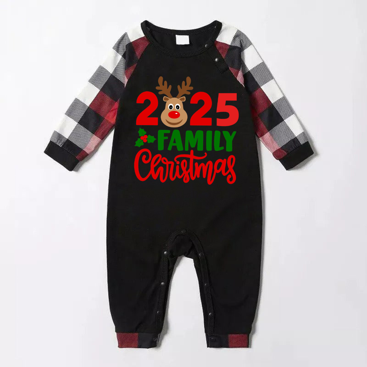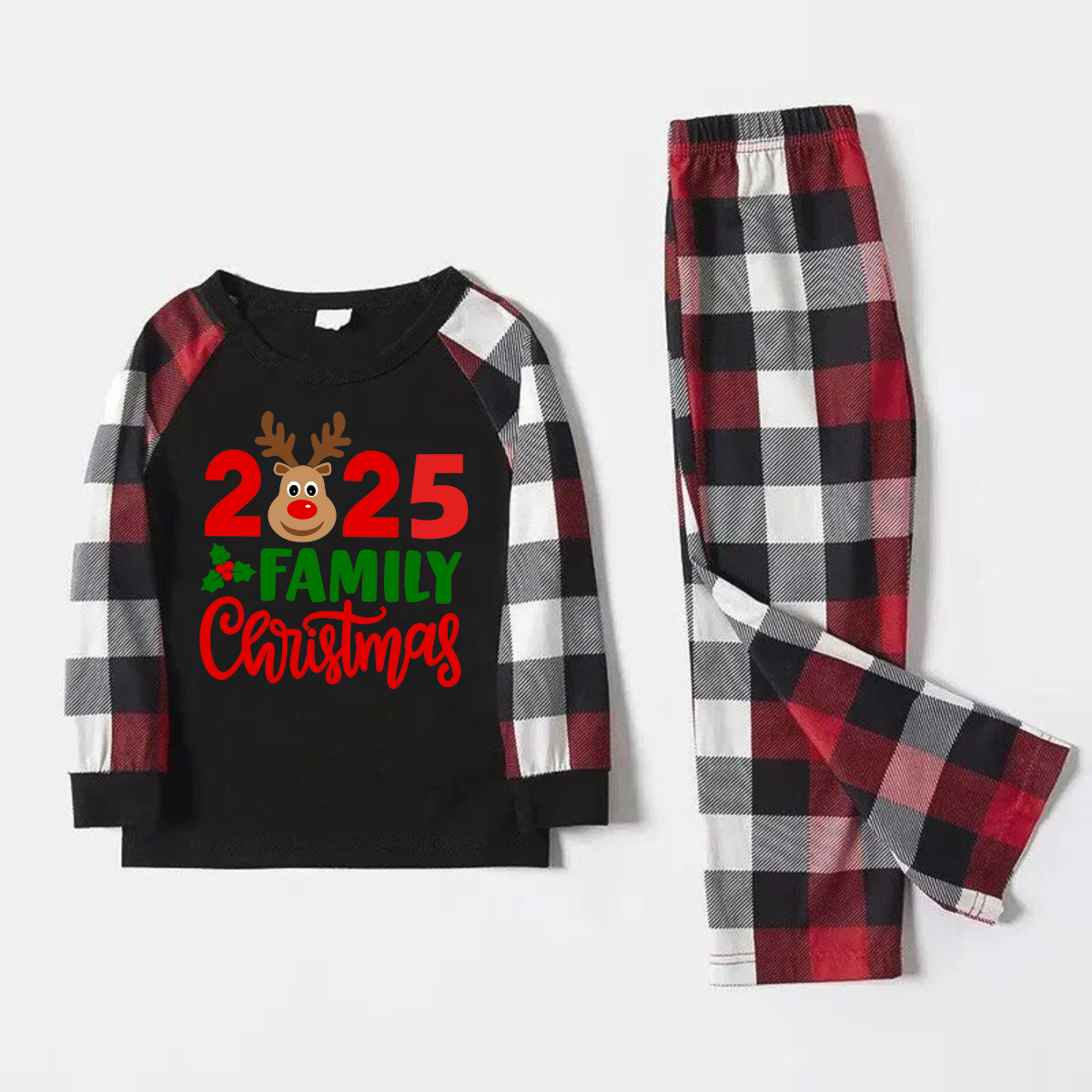 Luvik | "2025 Perhepäivä Joulu" Hirvi Kirjeet Tulostaa Punainen & Musta & Harmaa & Valkoinen Ruudulliset Perhetyyliset Pyjamat
