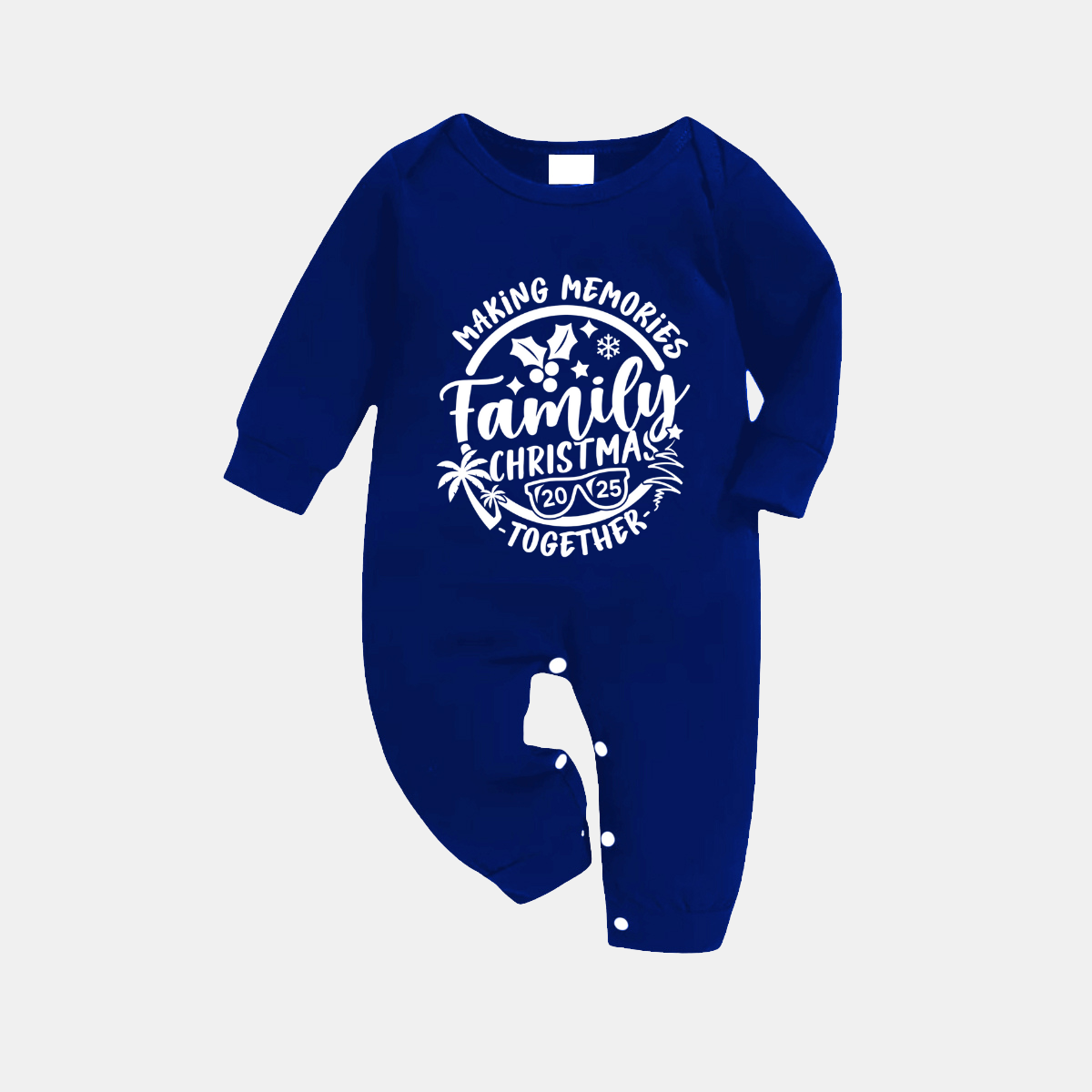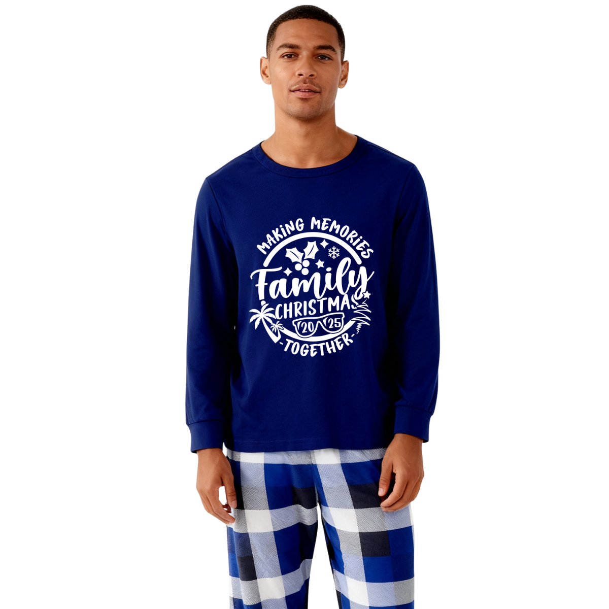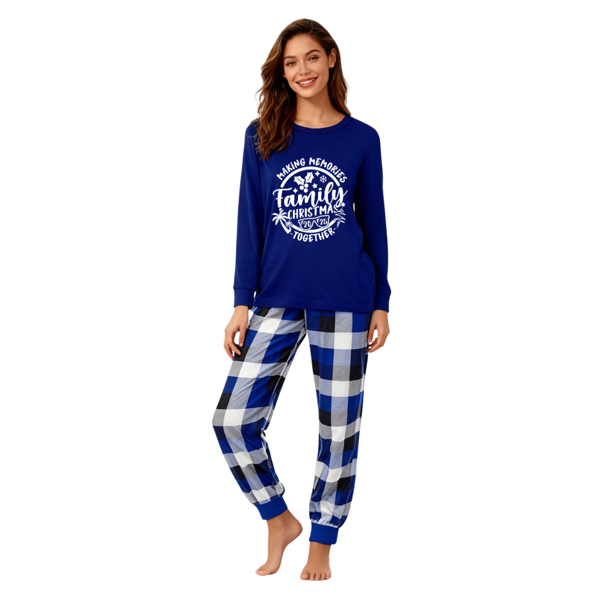 Luvik | "2025 Perheen Joulumuistot Yhdessä Luominen" Printhattu Sinivalkoinen Ruudullinen Perhe Samanlaiset Pyjamat