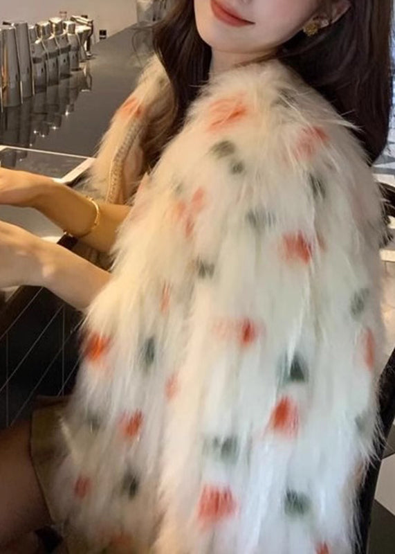 Luvik | Vartalo takki ruskean pesukarhun karvasta V-pääntiellä aprikoosi