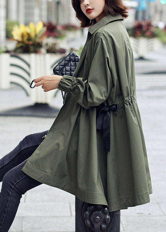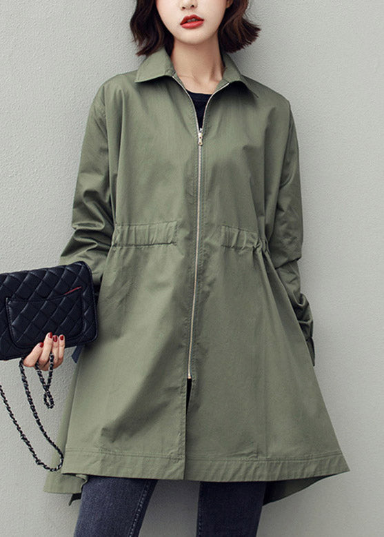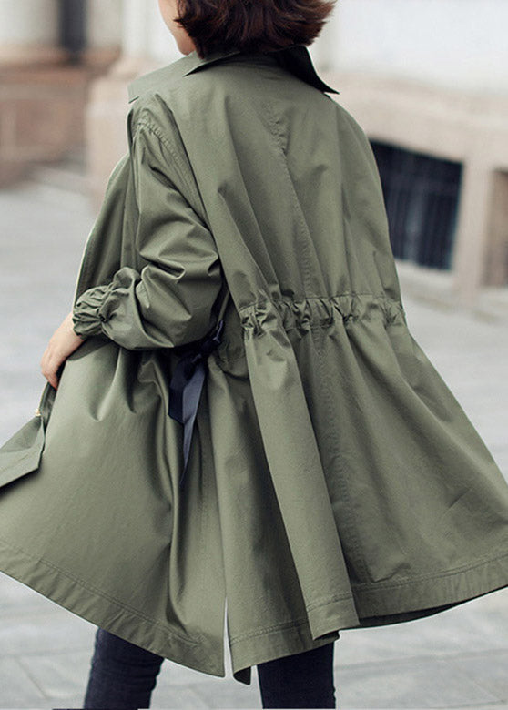 Luvik | Vihreä armeija Peter-Pan kaulus vetoketju naru puuvilla pitkät takit trench
