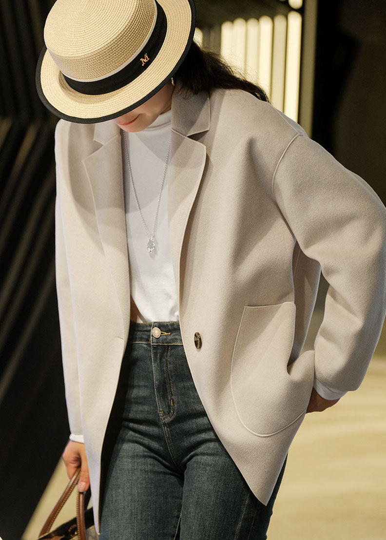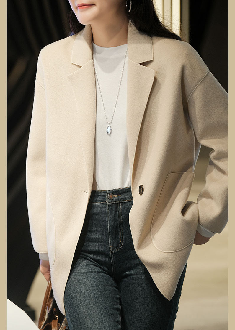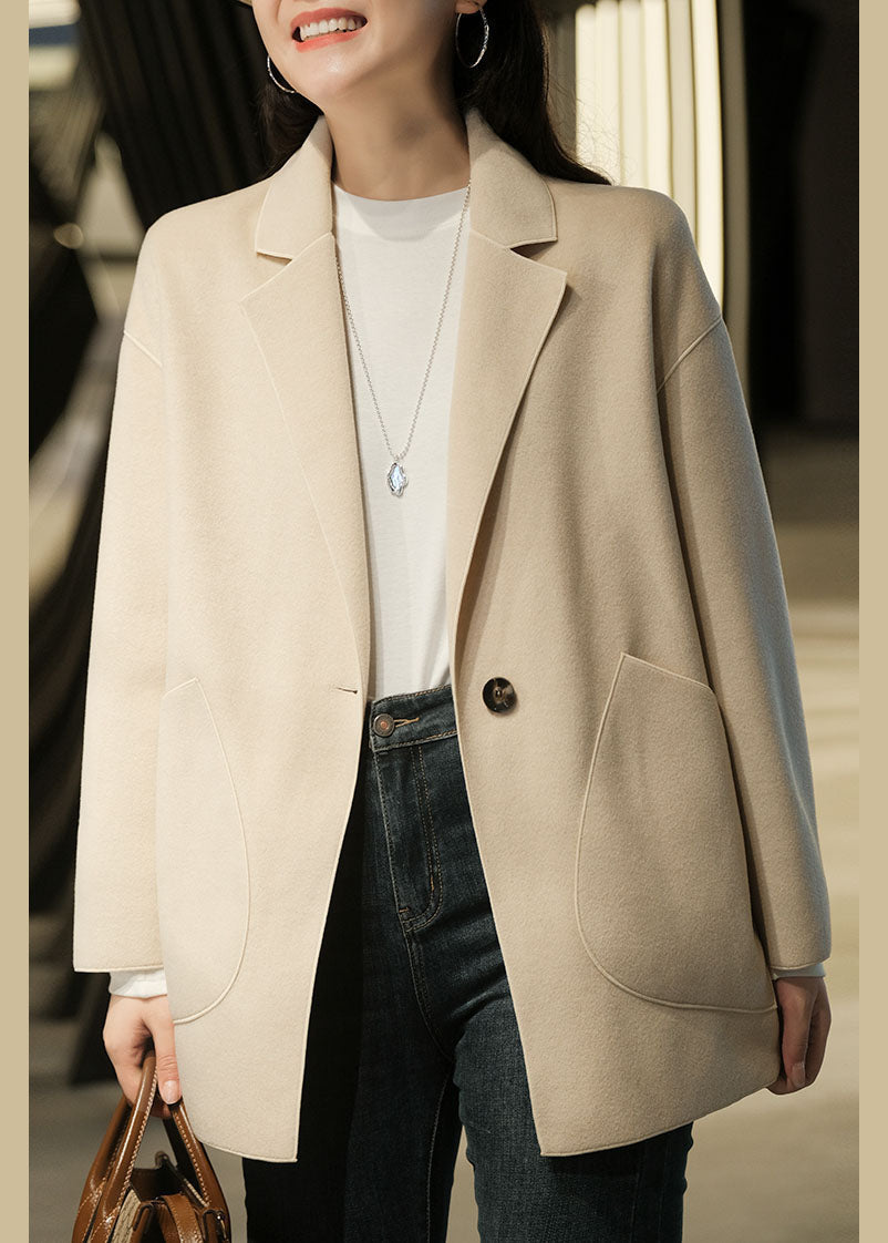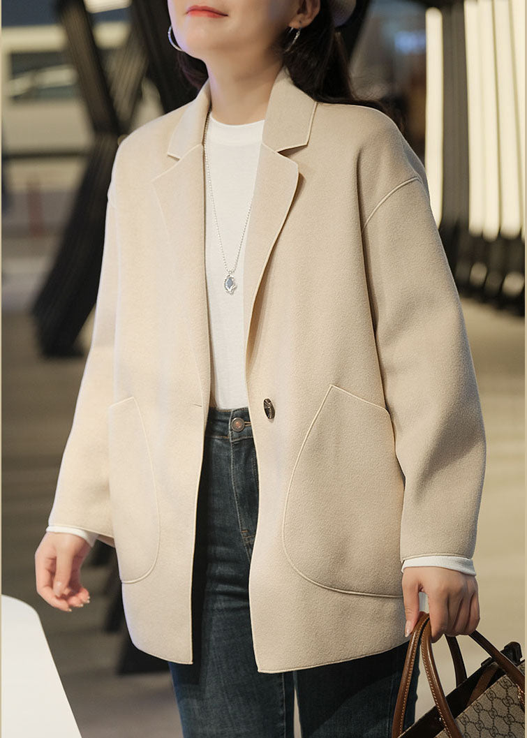 Luvik | Beigen Peter Pan -kauluksellinen talvilampaantakkie, jossa on nappi