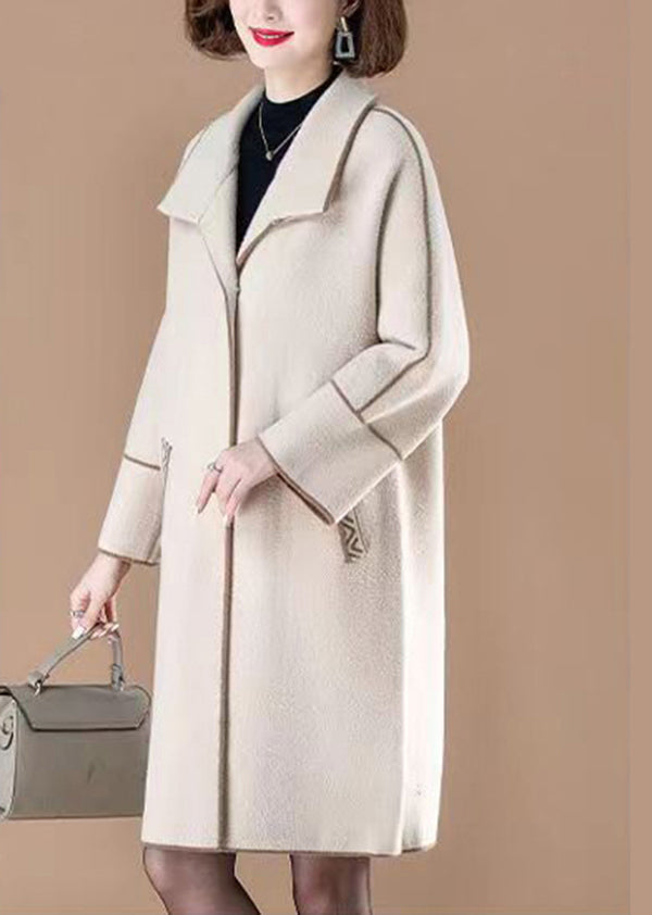 Luvik | Villakangas takki patchwork Peter Pan -kauluksella beige talvi