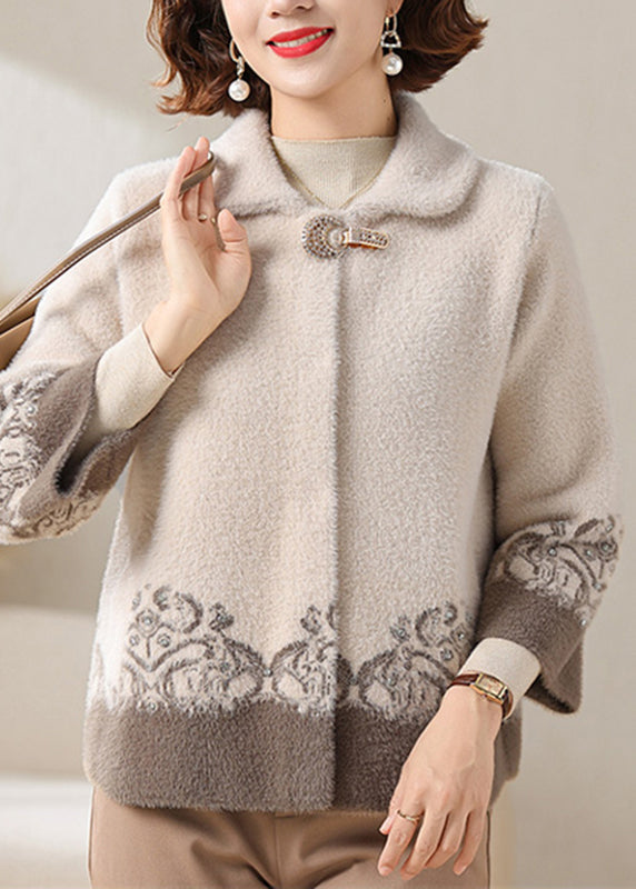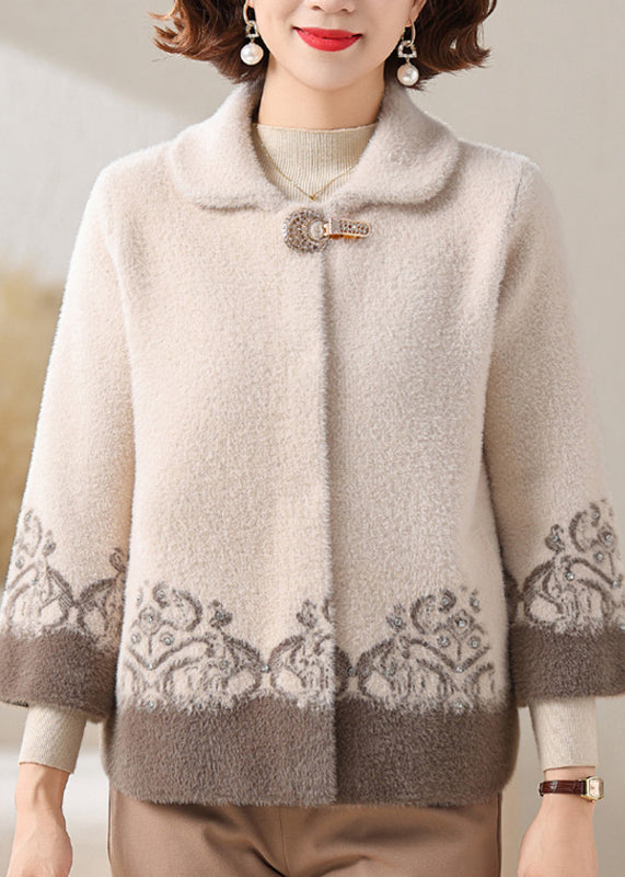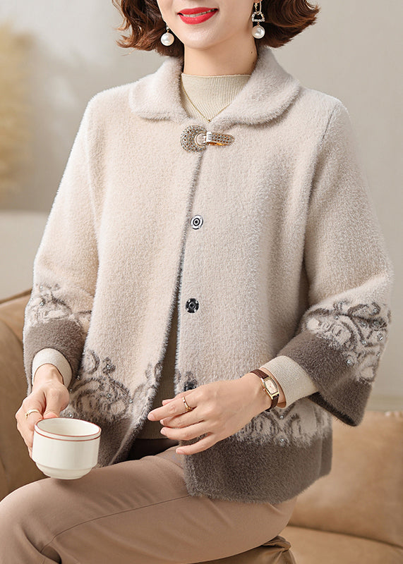 Luvik | Sametti minky takki Peter Pan -kauluksella beige