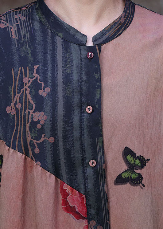 Luvik | Värilohkot Korkea kaulus Taskut Patchwork Silkkitakit Pitkät hihat