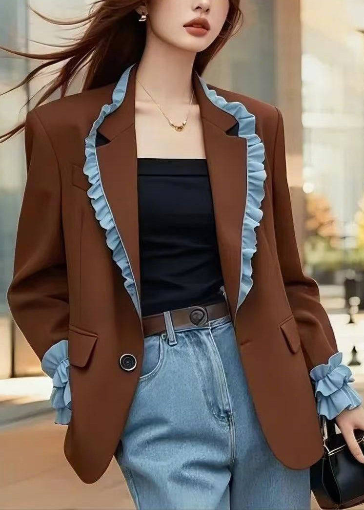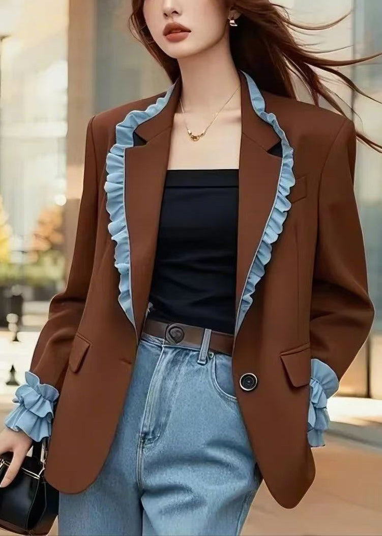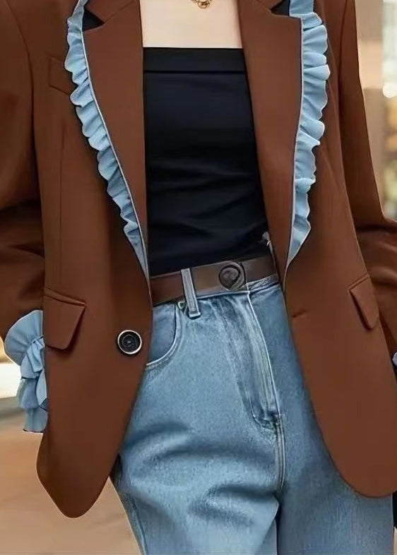 Luvik | Ruskea ryppypoikapanta-patchwork-takki