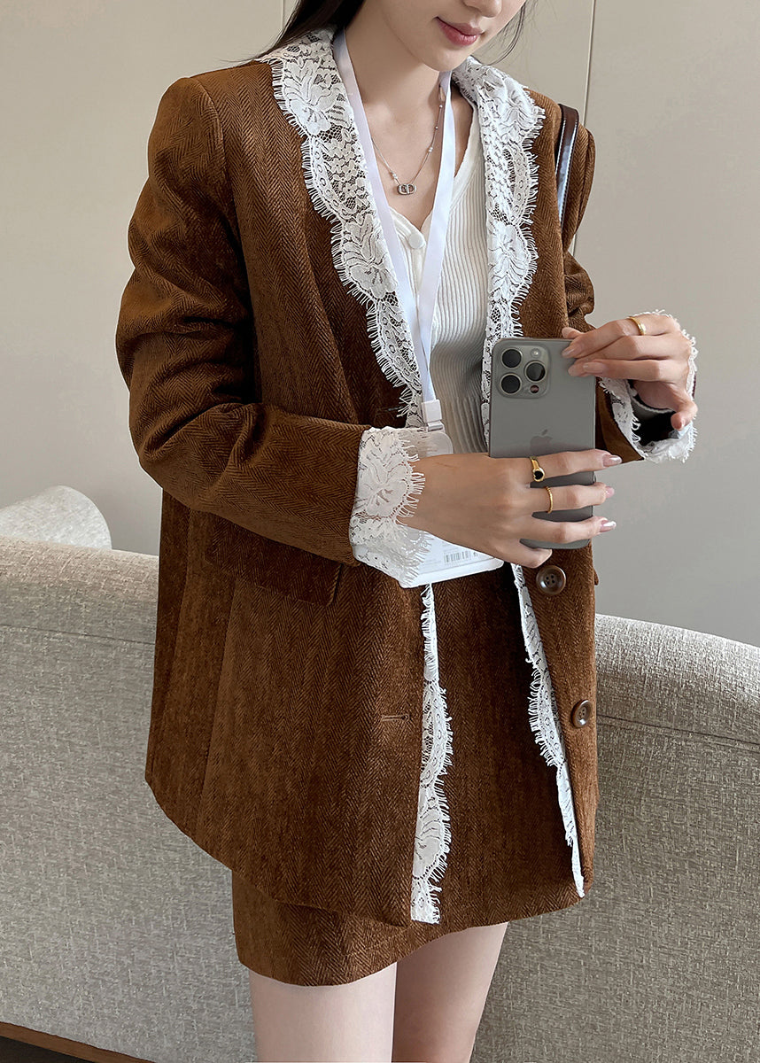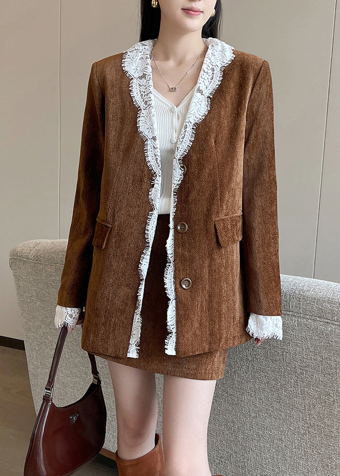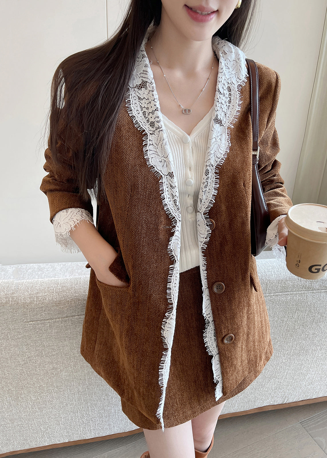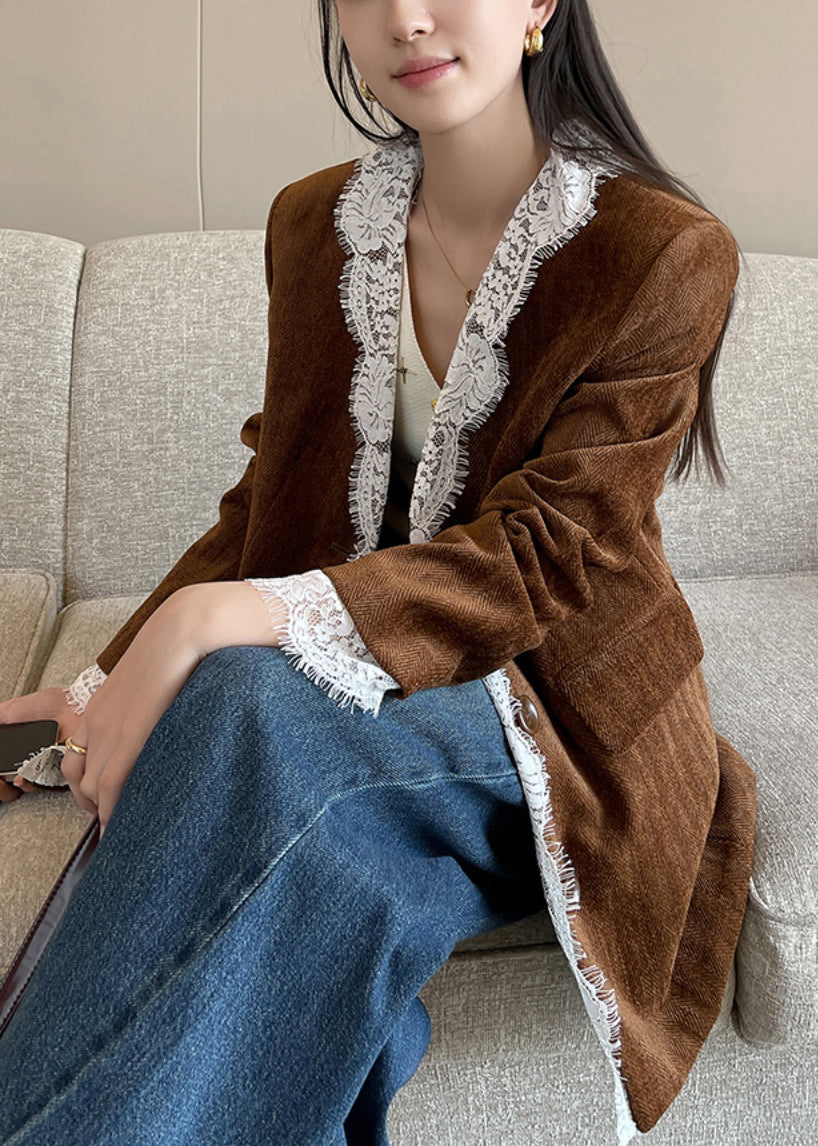 Luvik | Samettiveloureista patchwork-takkia ruskeilla napeilla ja nauhoilla