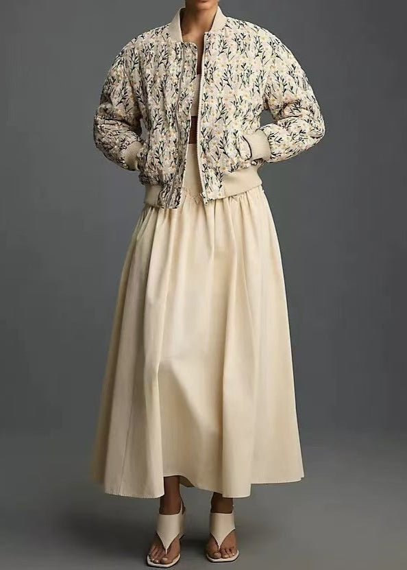 luvik-vohvelikerrosteinen bomber-takki on erinomainen yhdistelmä nostalgista tunnelmaa ja nykyaikaista eleganssia. Se on valmistettu taidokkaalla luvik-ompelulla pehmeälle, tuftatulle materiaalille, ja se tarjoaa sekä mukavuutta että vaivattomuutta tyylissä. Ribatut hihansuut, helma ja kaulus luovat klassisen muodon, kun taas rento leikkaus takaa korkean käyttömukavuuden. Tämä monikäyttöinen vaate sopii upeasti yhdistettäväksi mekkojen, farkkujen tai räätälöityjen housujen kanssa tyylikästä siirtymäasua varten.