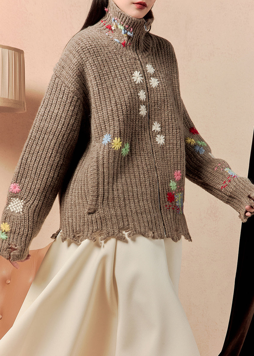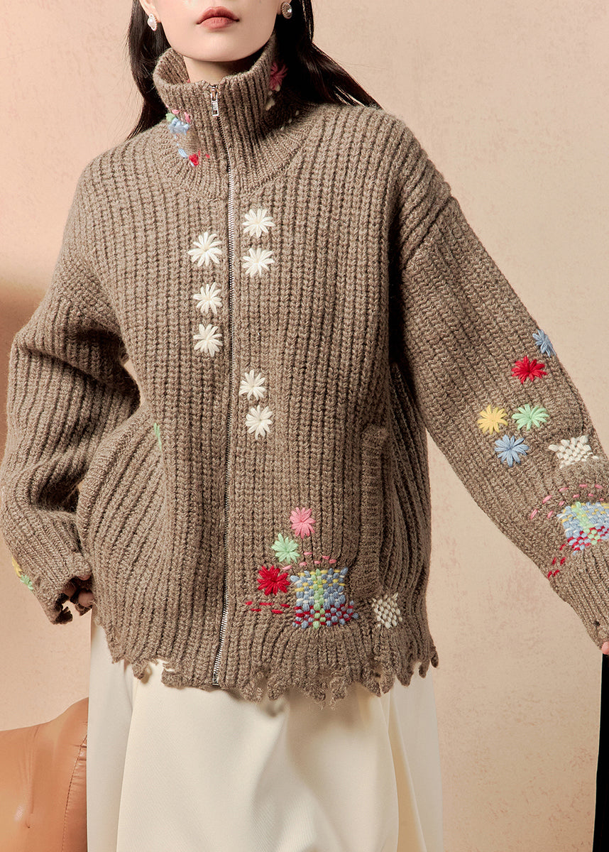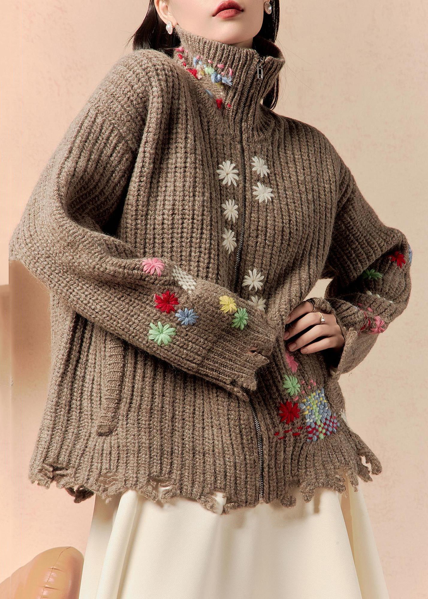 Luvik | Kahvi Vetoketjulla Villapussit Talvitakit