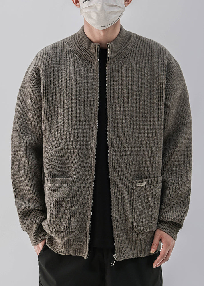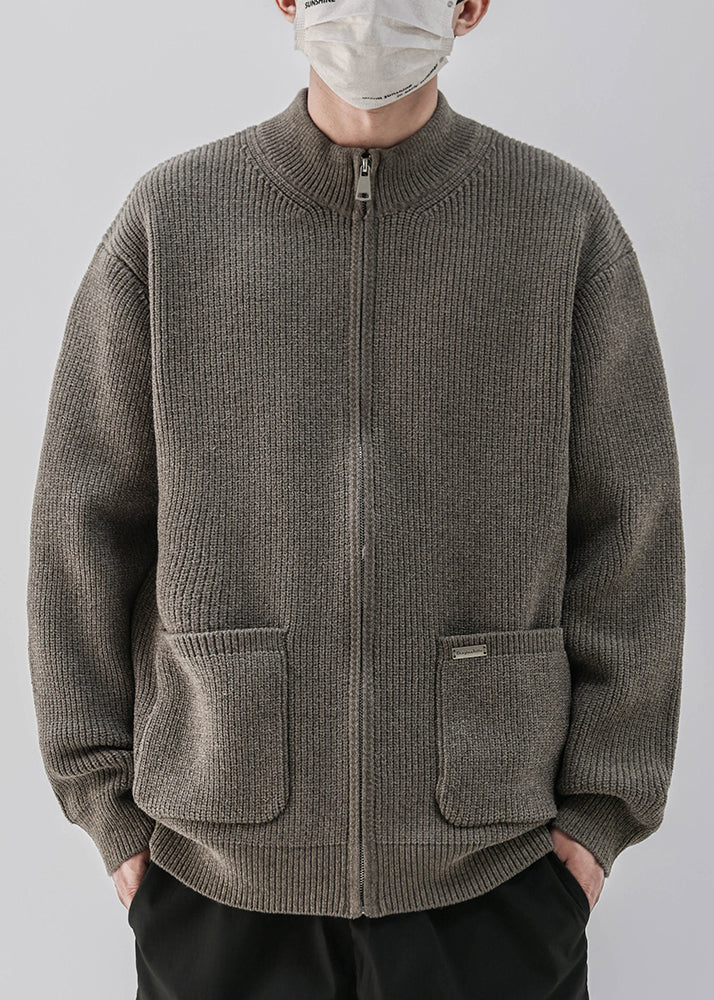 Luvik | Kahvi Vetoketju Taskut Neuleet Miehet Takit