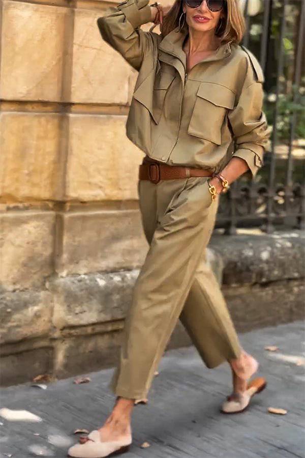 Luvik | Charm Strap Details Tasku Cargo Tyyli Vetoketju Rento Takki