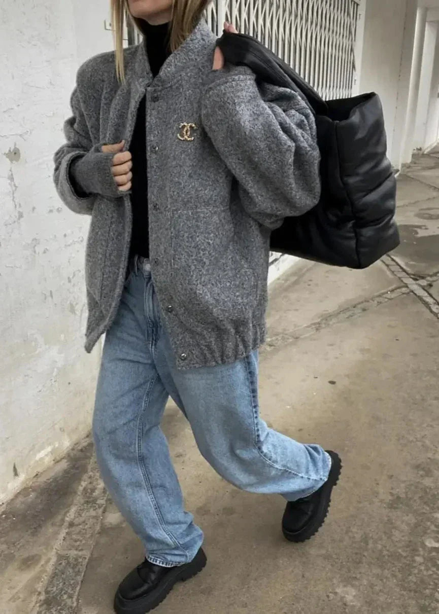 Anna asullesi vaivattomasti uusi ulottuvuus tällä klassisella Luvik Bouclé Bomber-takilla. Rakenteellinen Bouclé-pinta tarjoaa mukavan käyttökokemuksen ja samalla elegantin sävyn, kun taas yksinkertainen pystykaulus ja rento istuvuus antavat modernin vivahteen. Täydellinen heitettäväksi rentojen asujen päälle tai tuomaan ripauksen eleganssia iltaa varten, tämä takki on monikäyttöinen ja suunniteltu vuoden ympäri käytettäväksi. Yksinkertainen muotoilu sisältää kaksi tilavaa taskua lisää käytännöllisyyttä varten ja tekee siitä sekä tyylikkään että hyödyllisen. Yhdistä se nahkahousujen tai farkkujen kanssa tyylikkään, kevyen ilmeen saavuttamiseksi.