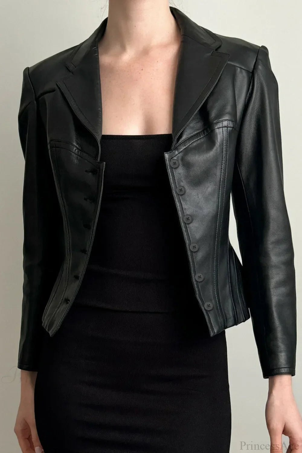 Luvik | Lyhyt Notch-kauluksellinen nahkaketju Slim-Fit-takki
