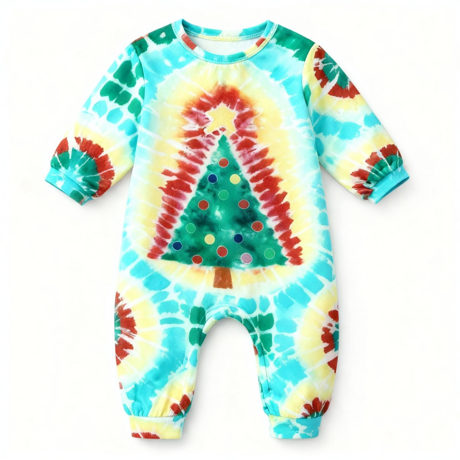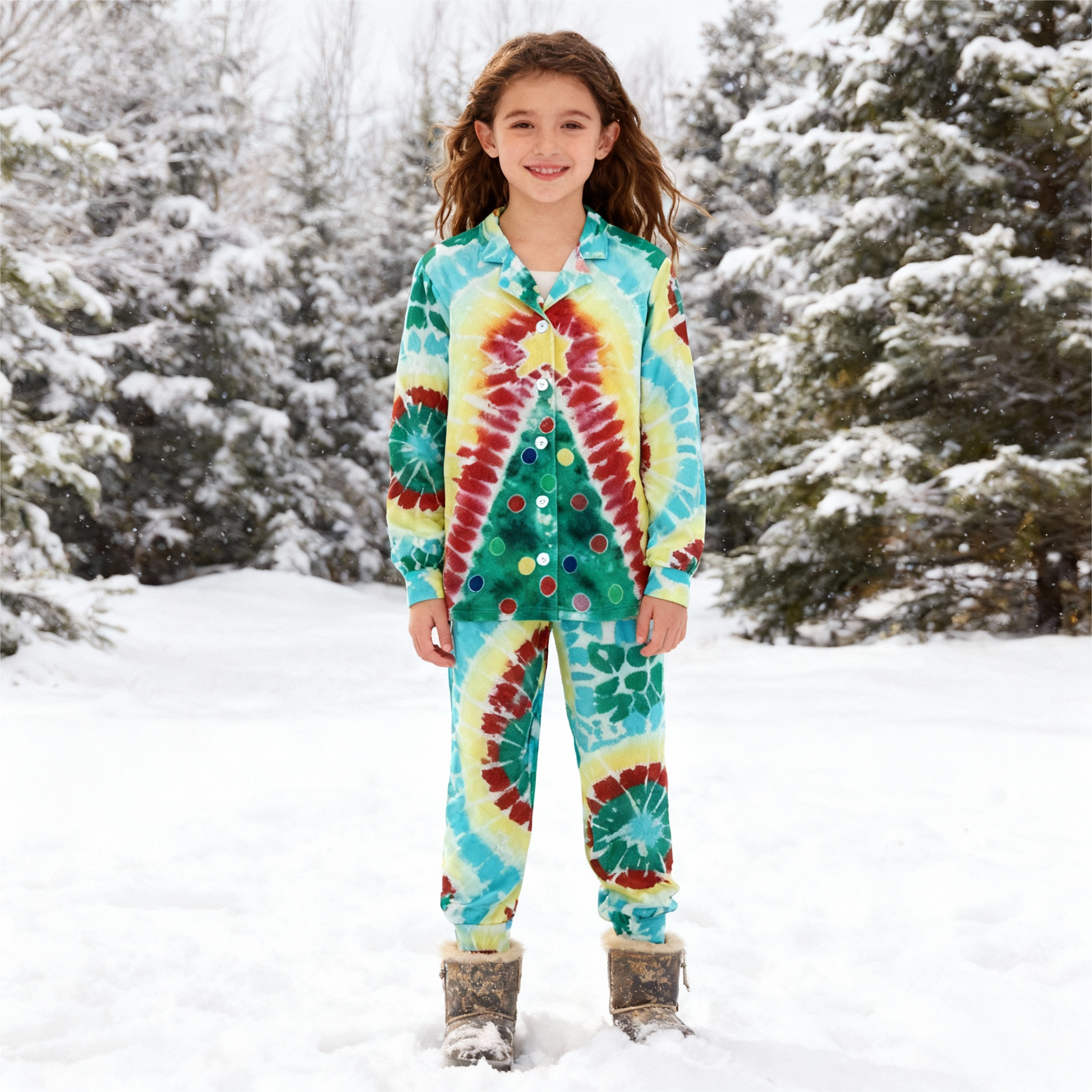 Luvik | Loma-perhe nappisuljennus vihreä & keltainen sidontakuvioinen joulupyjama-setti