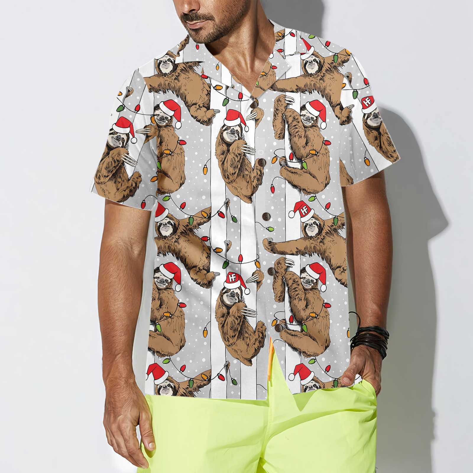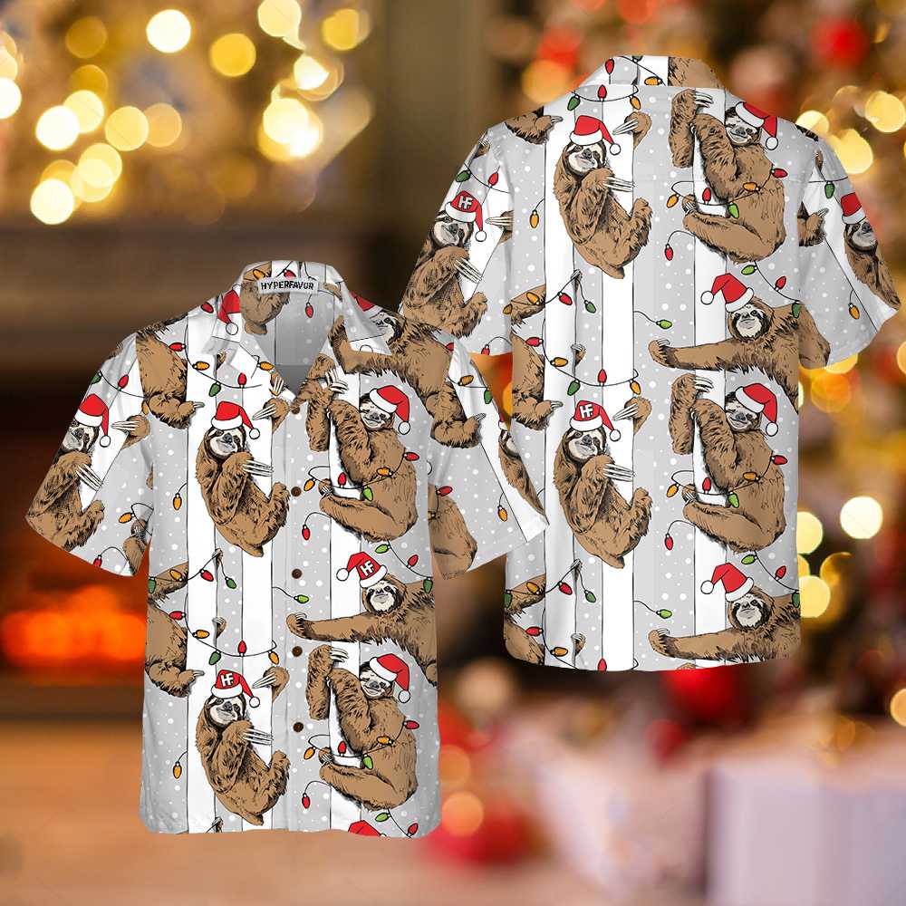 Luvik | Hauska laiskiainen joulupukin hatulla Harmaa jouluhawaiihuppu, Paras jouluhawaiipaita laiskiaisten rakastajille