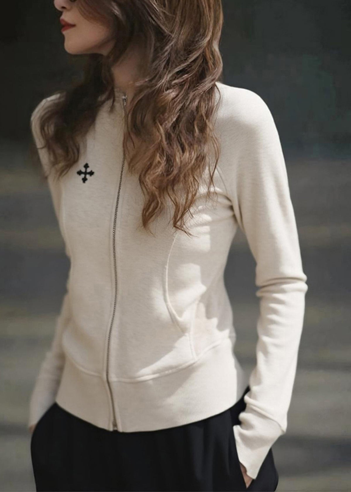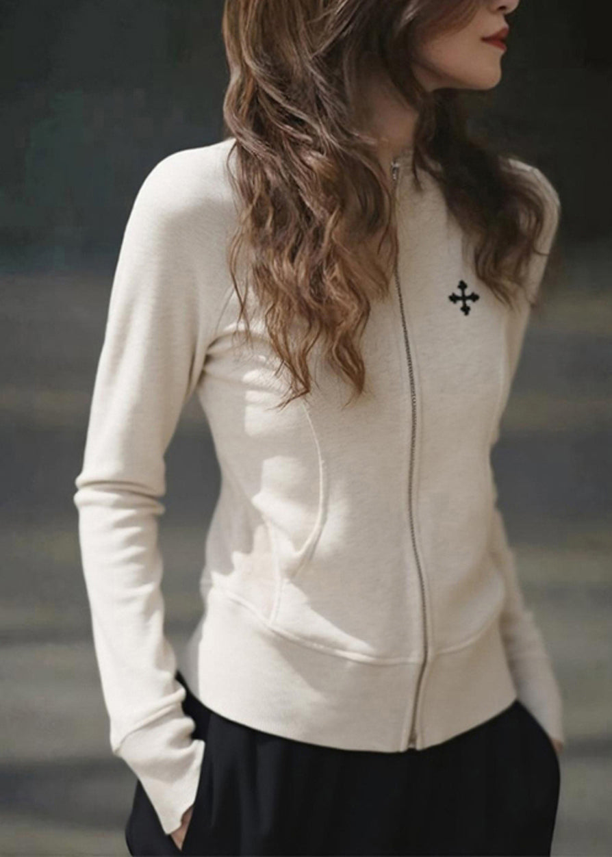 Luvik | Fit Beige O-Kaula Pyöreä Vetoketju Patchwork Takit Puuvillasta