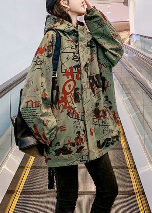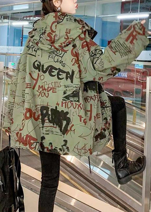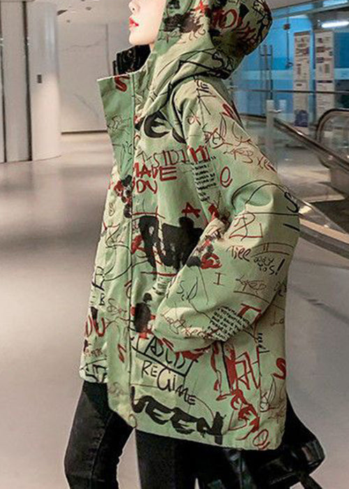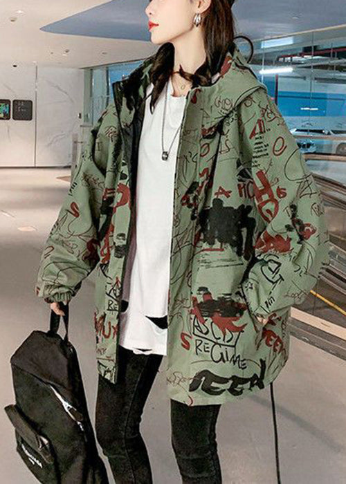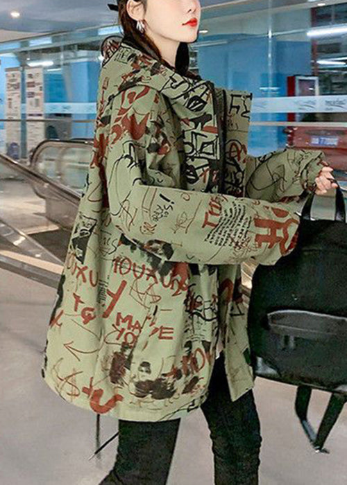 Luvik | V-aukko Haustetakki puuvillasta vihreillä kirjaimilla ja taskuilla