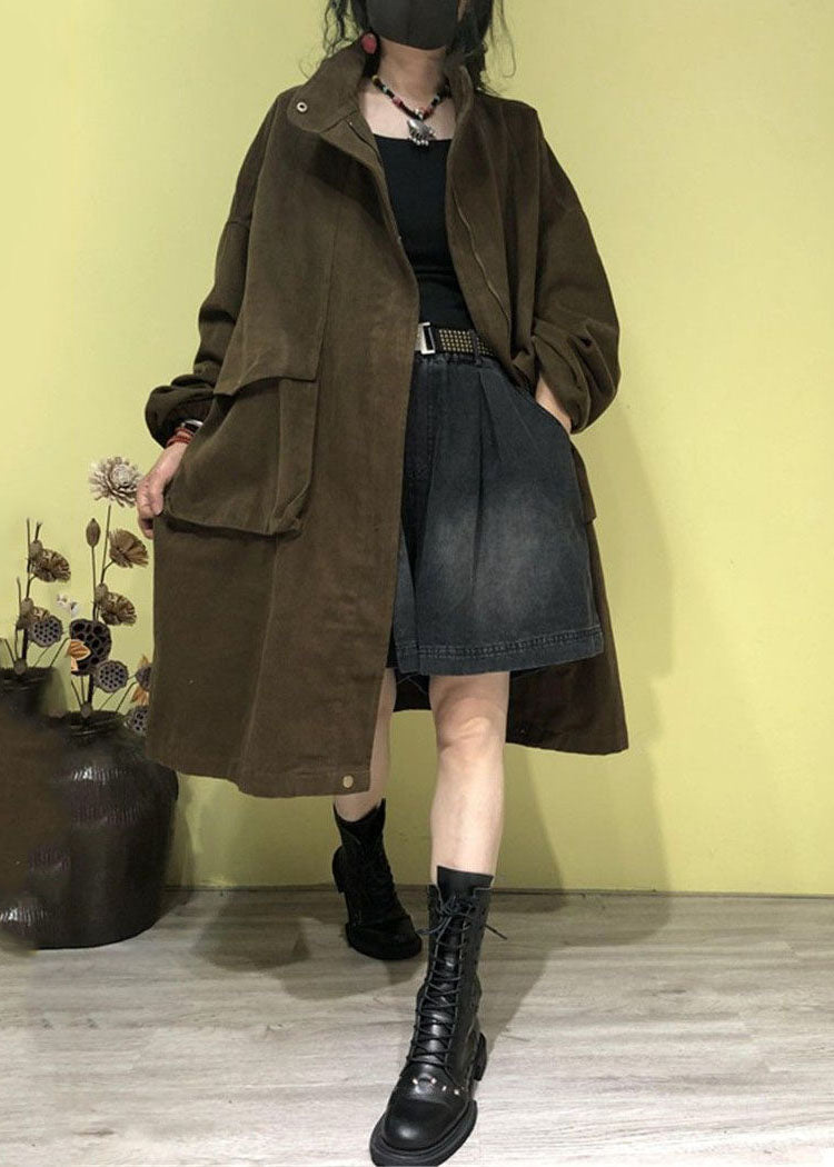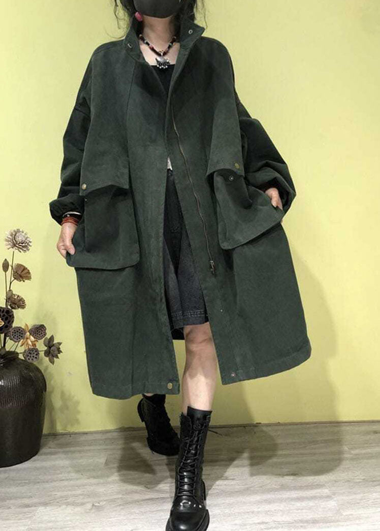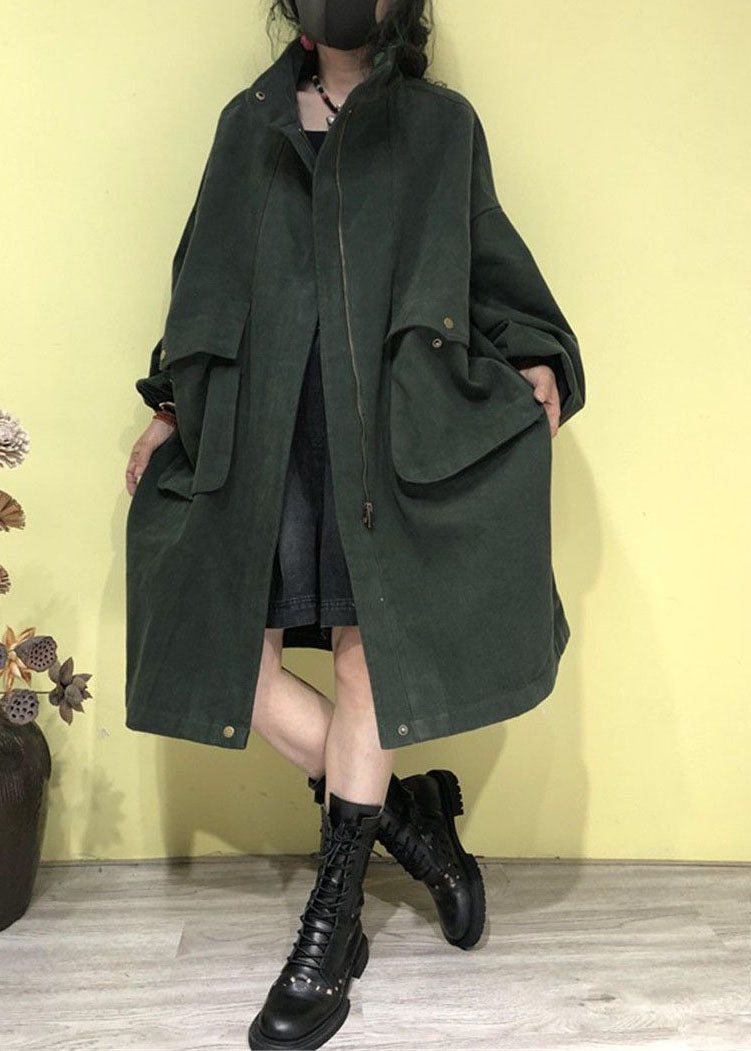 Luvik | Vyötärö Vihreä Korkea Kaulus Vetoketjullisilla Taskuilla Trenssitakit