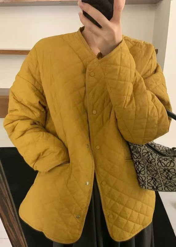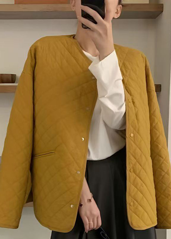 Luvik | Keltainen Vyötärö O Kaula Taskut Puuvilla Ohut Vanutakit