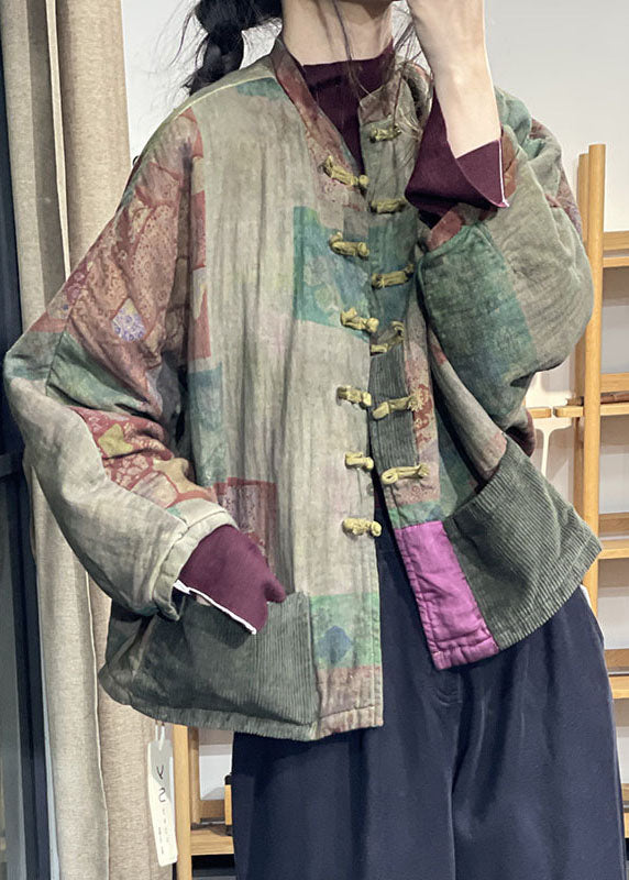 Luvik | Talvitakki itämaan patchwork-veluurista vihreillä napeilla, täytetty hienolla puuvillalla