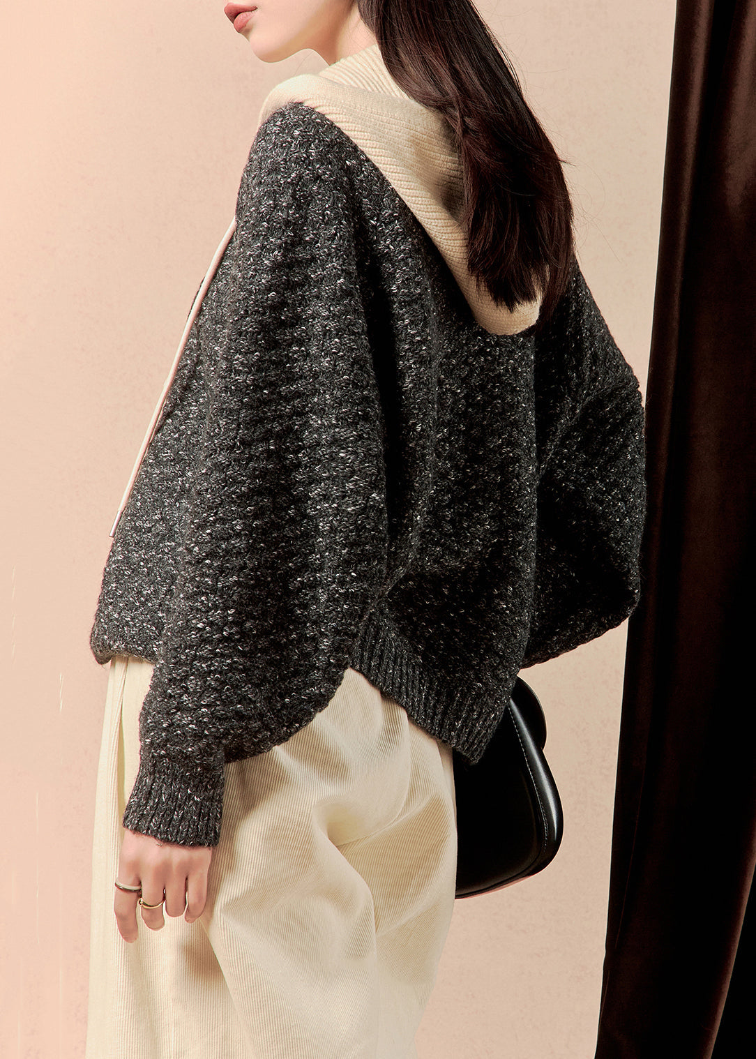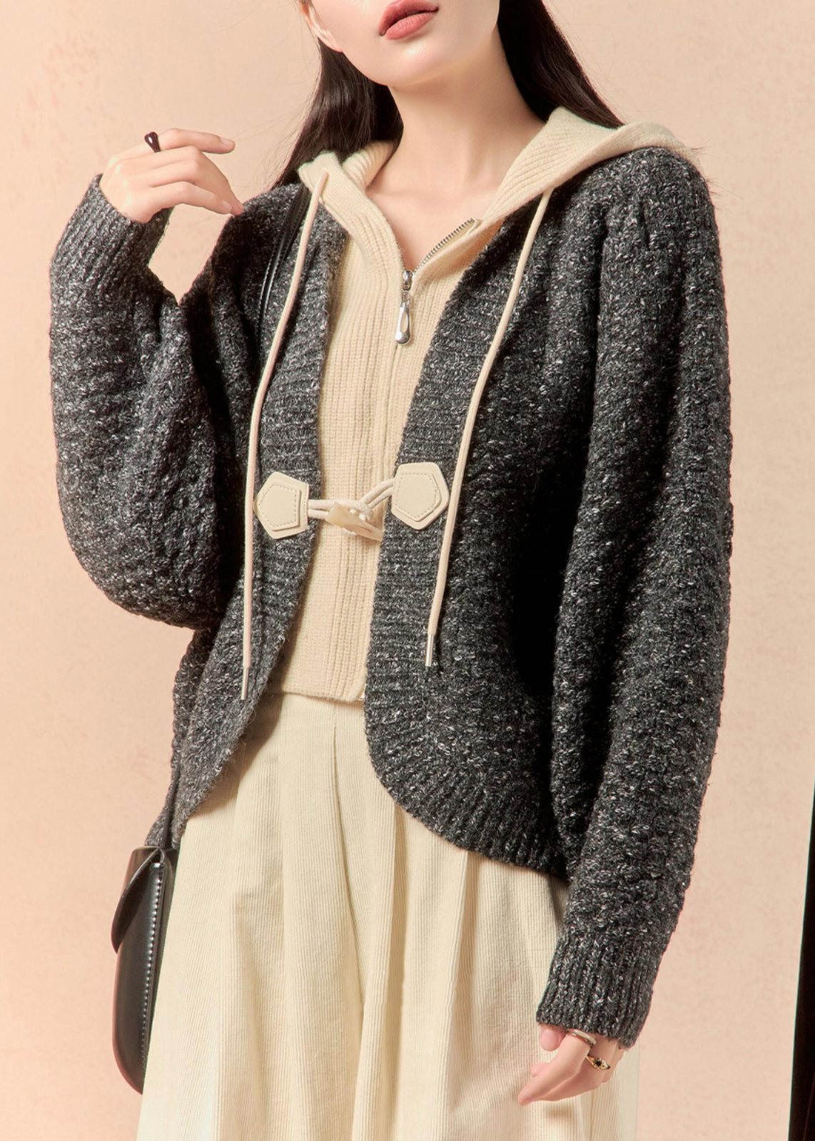 Luvik | Villatakki harmaalla huppulla, patchwork, feikkikaksiosainen, talvi