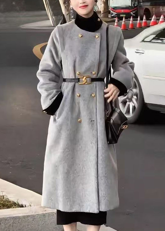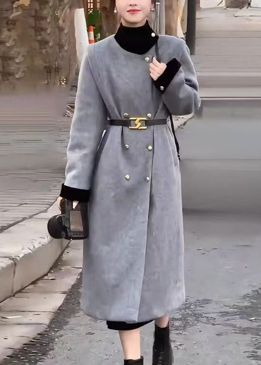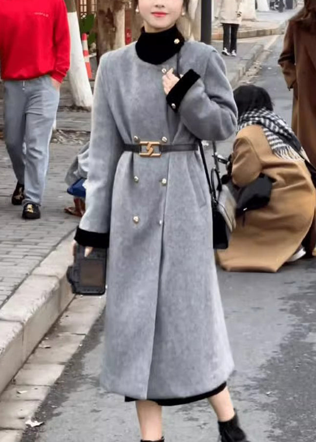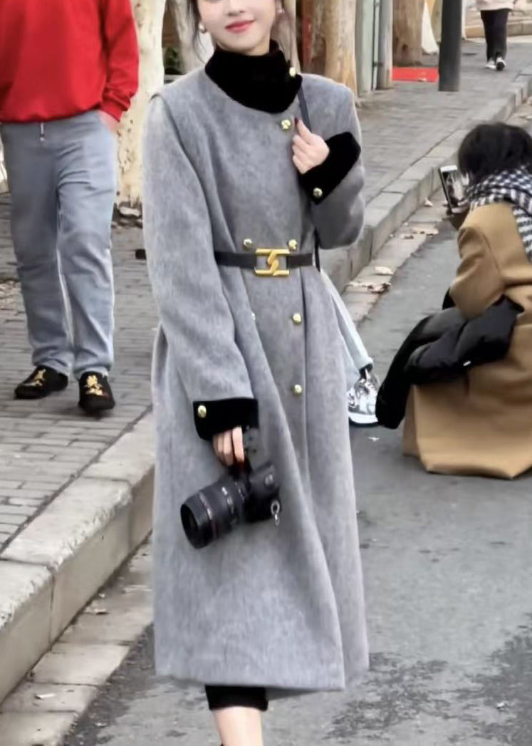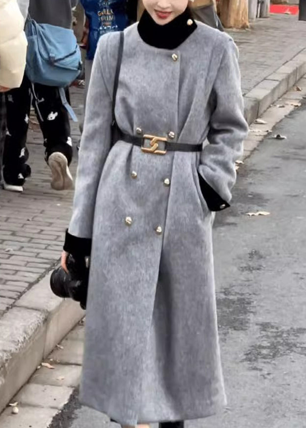 Luvik | Harmaa villa kaksirintainen vyö Pitkät takit
