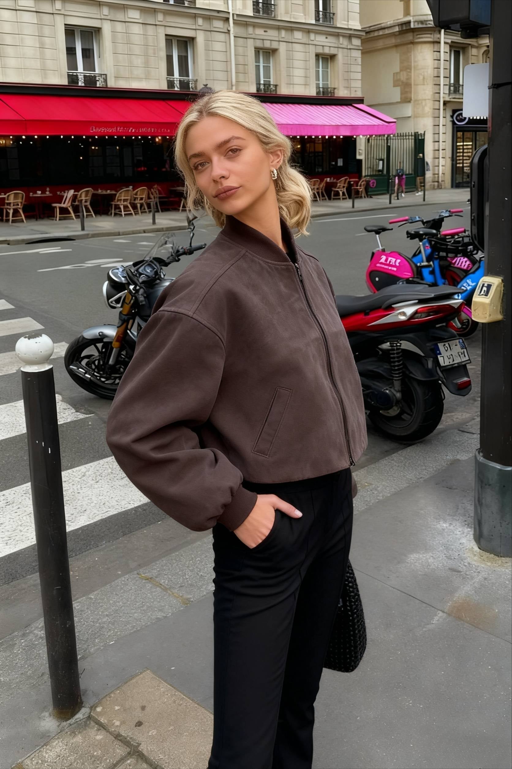 Luvik | Harmaa Nubuck Pilot Stand Collar Vetoketjunjakki