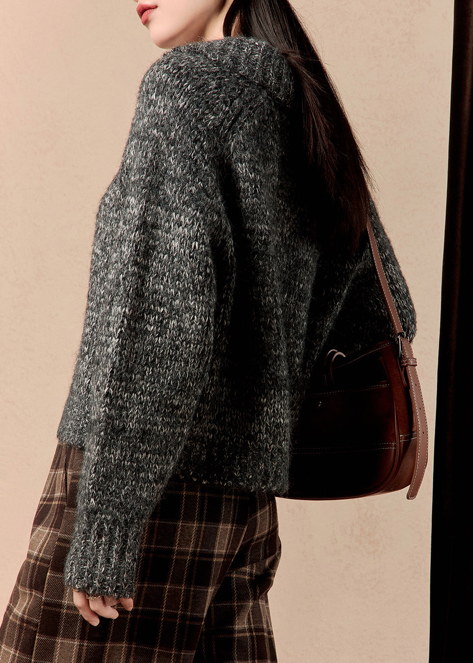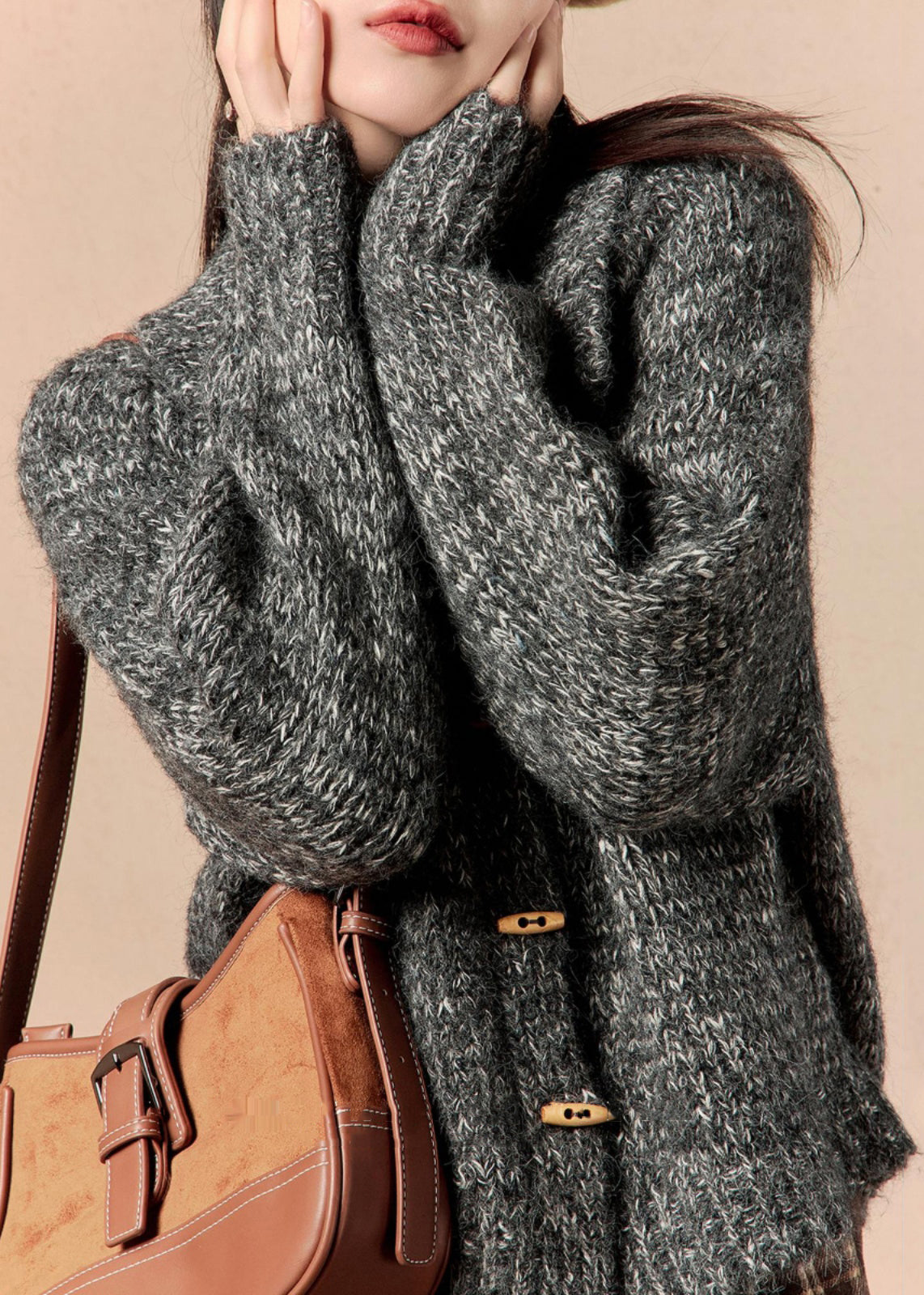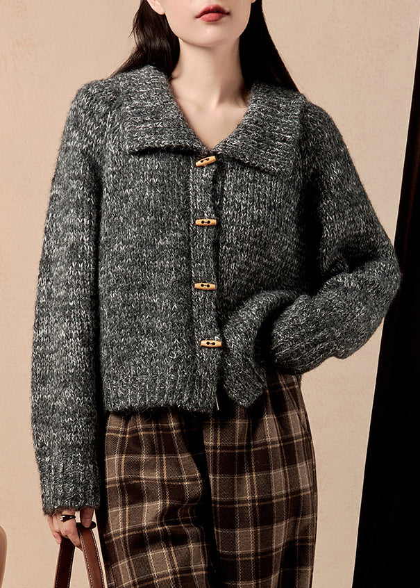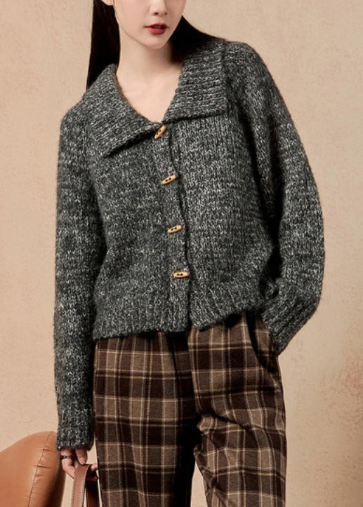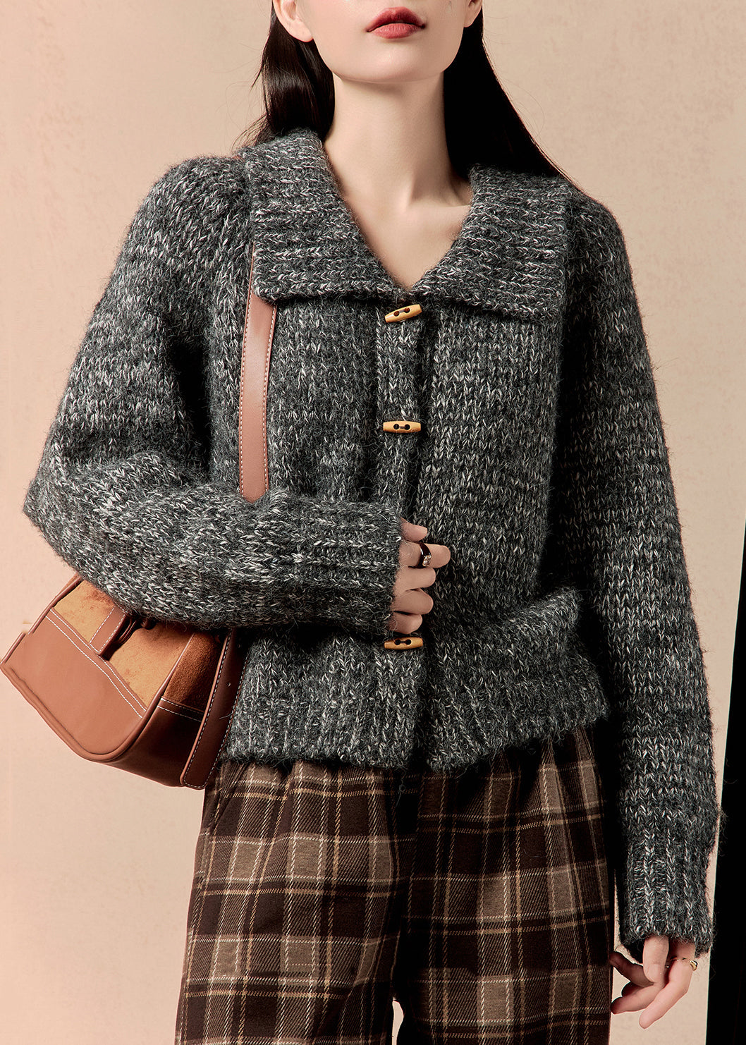 Luvik | Harmaa Peter Pan kauluksella varustettu neuletakki napilla talveksi