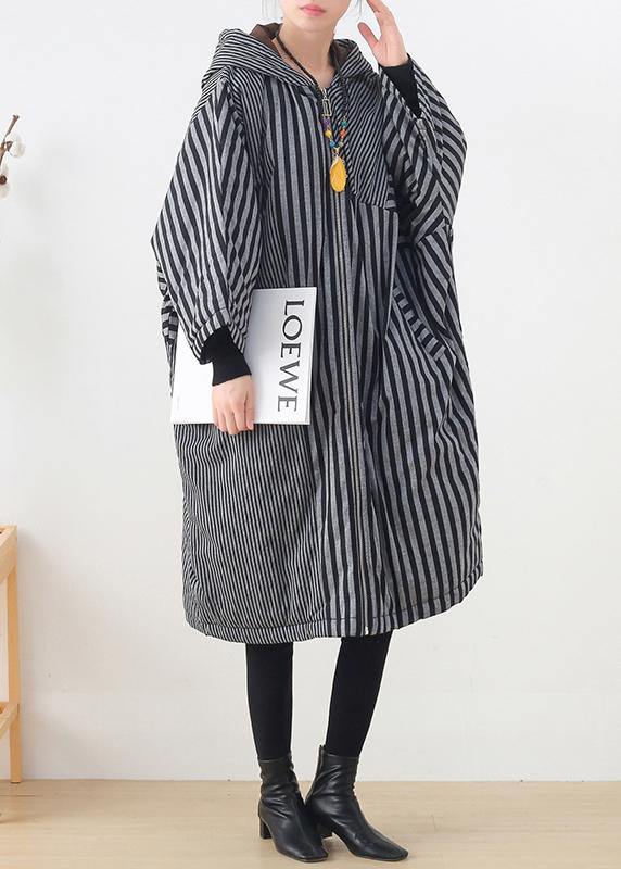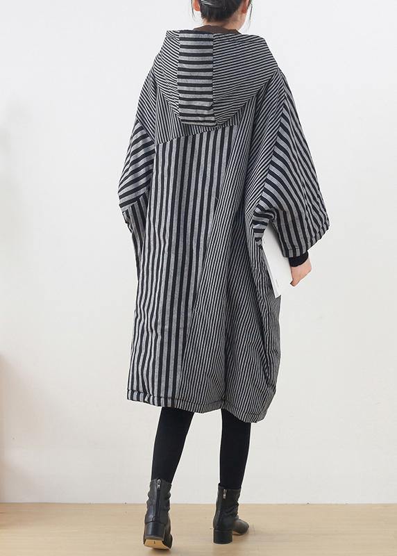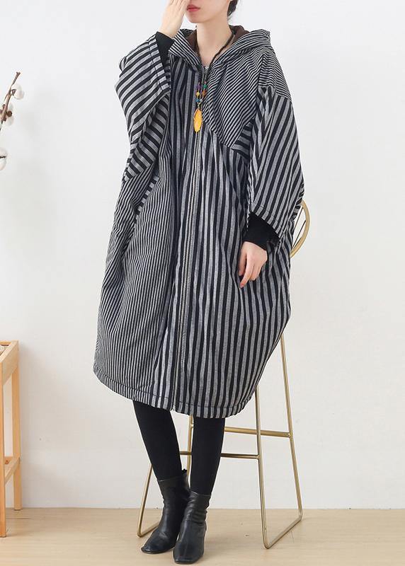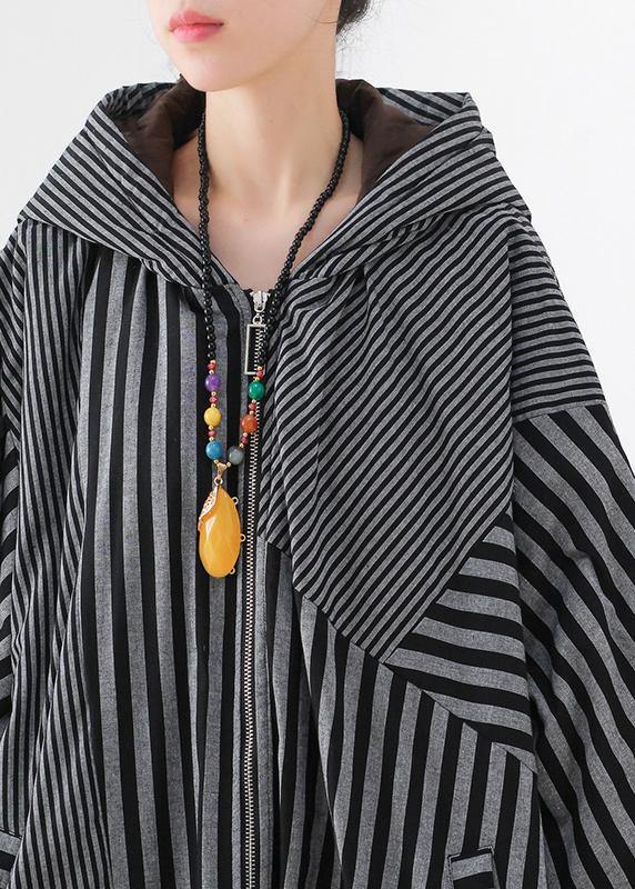 Luvik | harmaaraidallinen naisten takki suuri koko talvi tilkkutyö hupulla