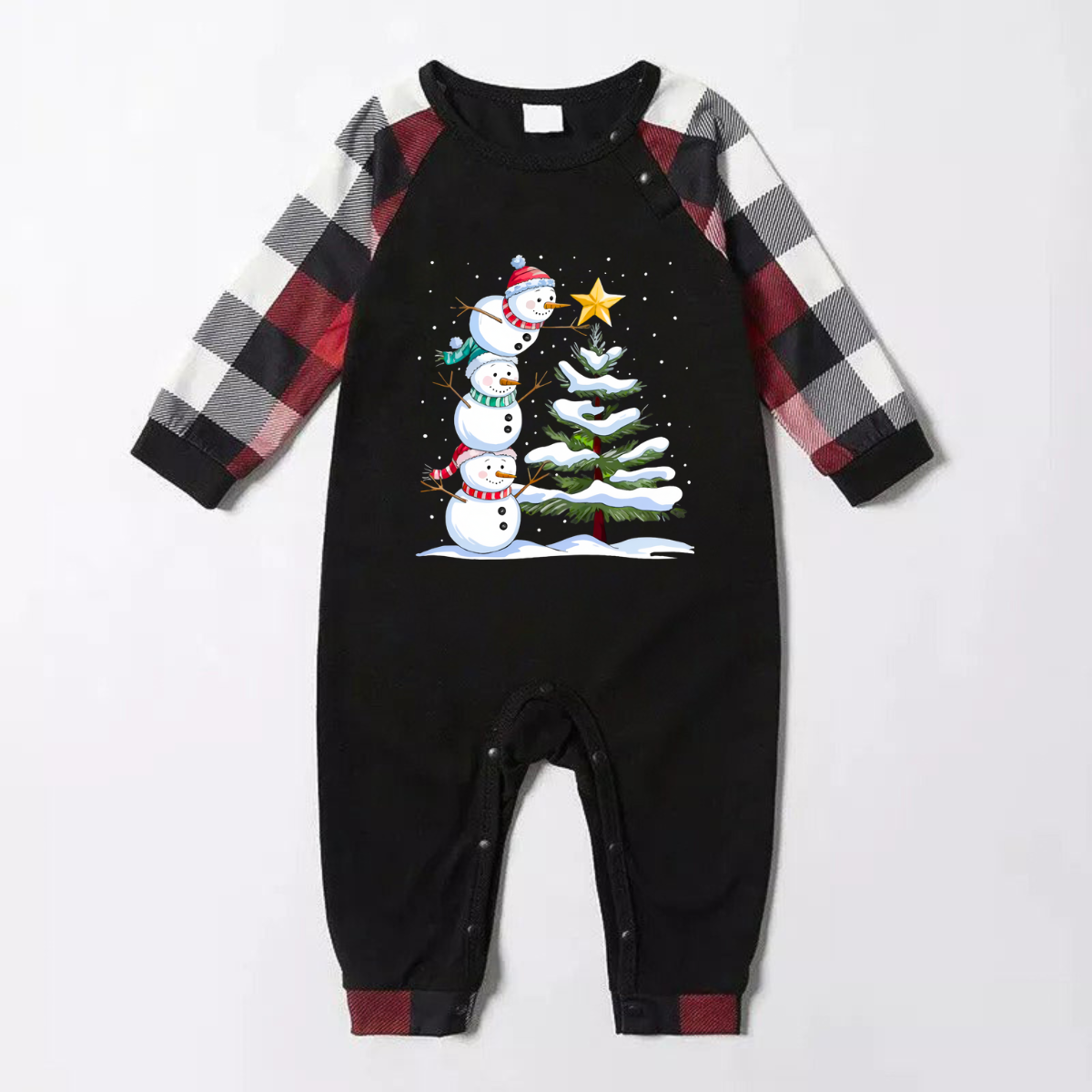 Luvik | Punainen ja harmaa ruudullinen joulupyjama-setti, jossa on lumiukko- ja joulukuusiprintti