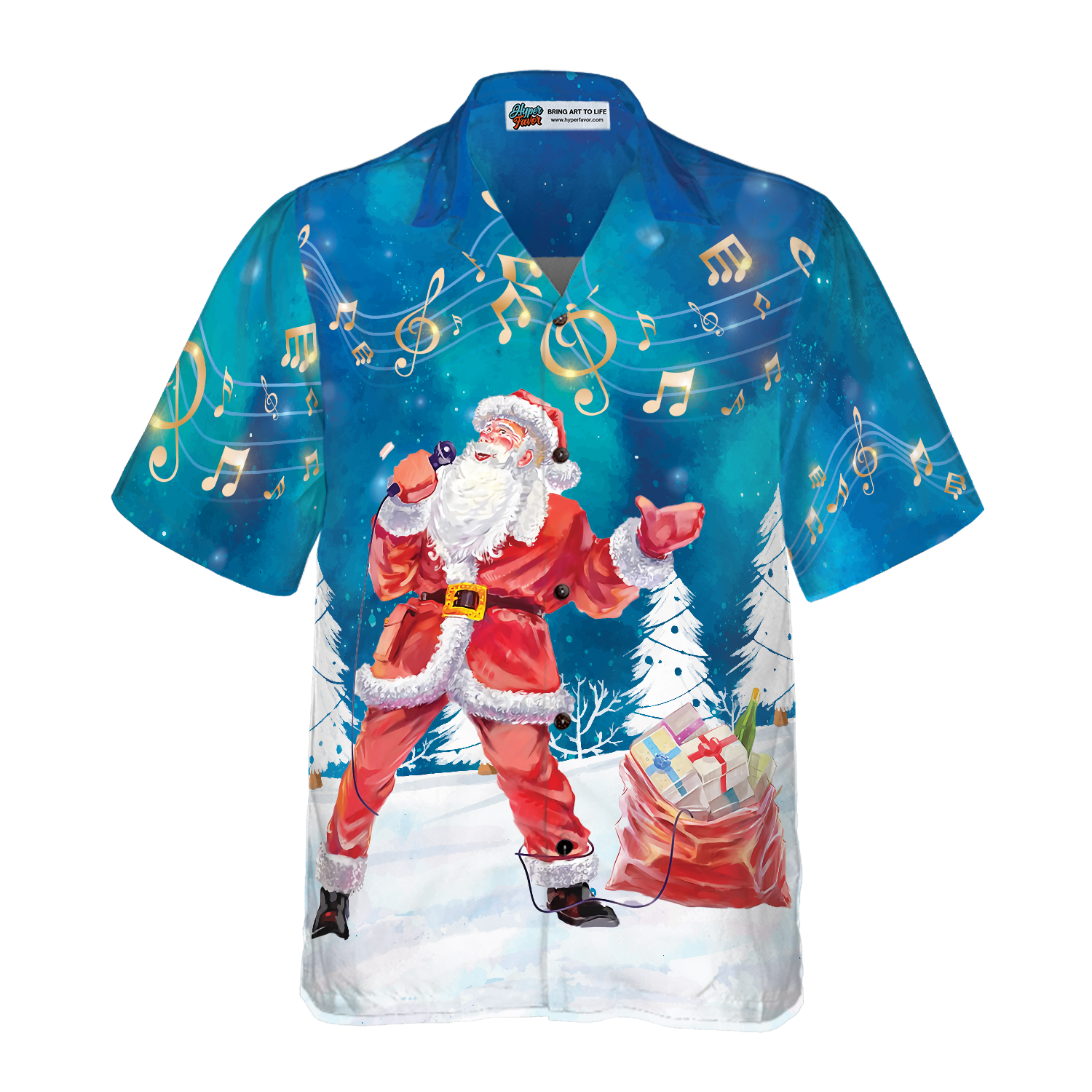 Luvik | Hawaijumppupaidat Hyperfavor joululle miehille ja naisille, Santa Sing Musiikki hawaijilainen lyhythihainen paita napilla