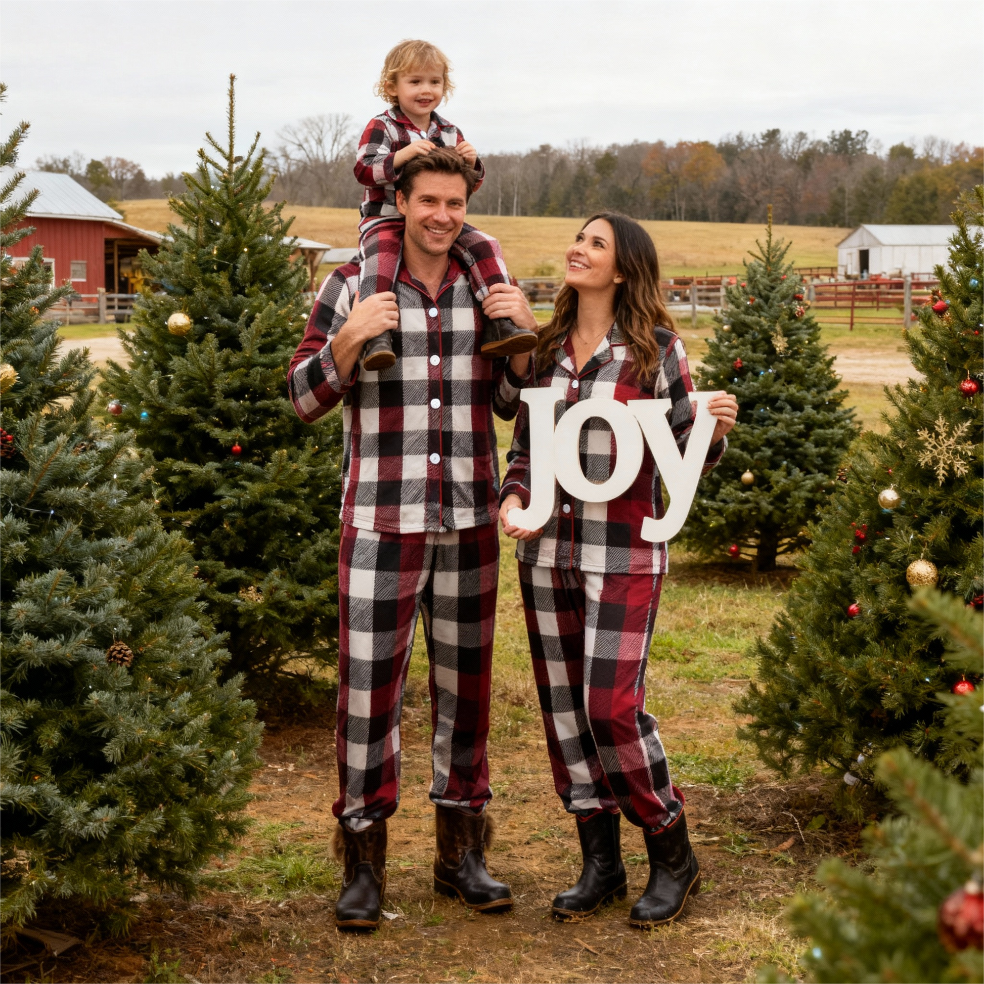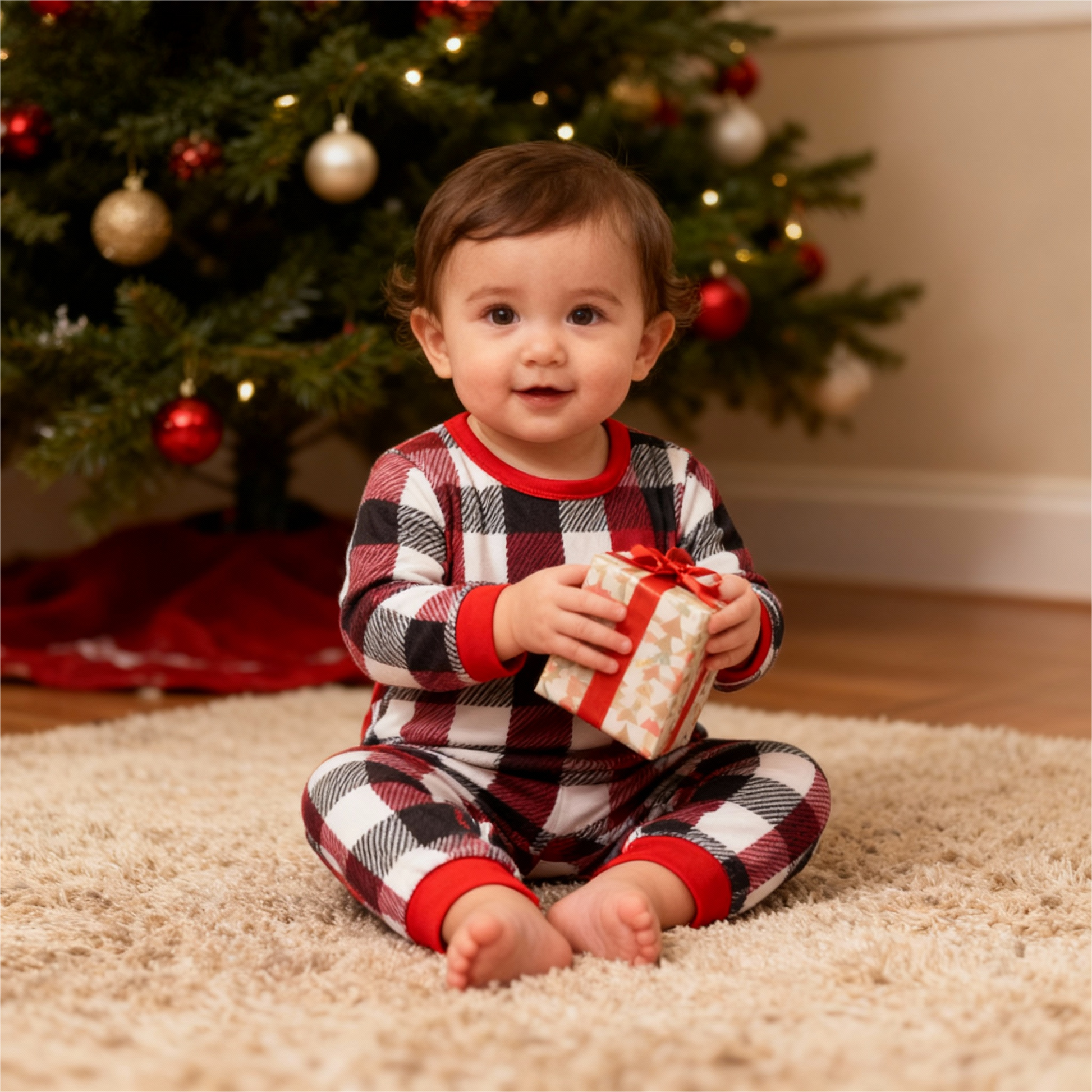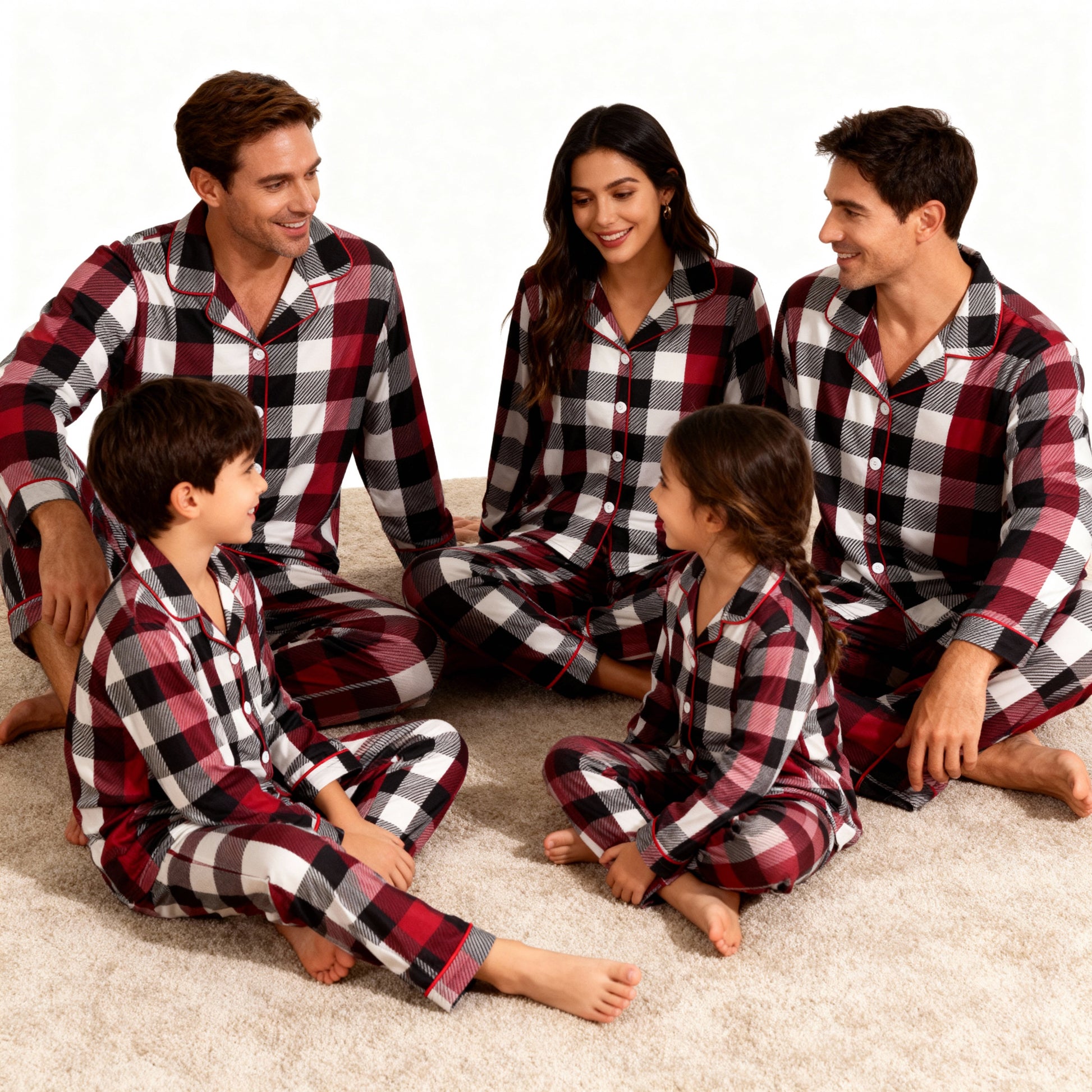 Luonnollista joulun aikaa meidän Klassisilla Punaisilla & Valkoisilla Ruudullisilla Joulupyjamilla! Tämä pyjama on valmistettu korkealaatuisesta 70 % puuvillasta ja 30 % polyesteristä ja tarjoaa täydellisen yhdistelmän pehmeyttä, hengittävyyttä ja kestävyttä – äärimmäiseen mukavuuteen jouluaatosta lämpimiin talviaamuihin.