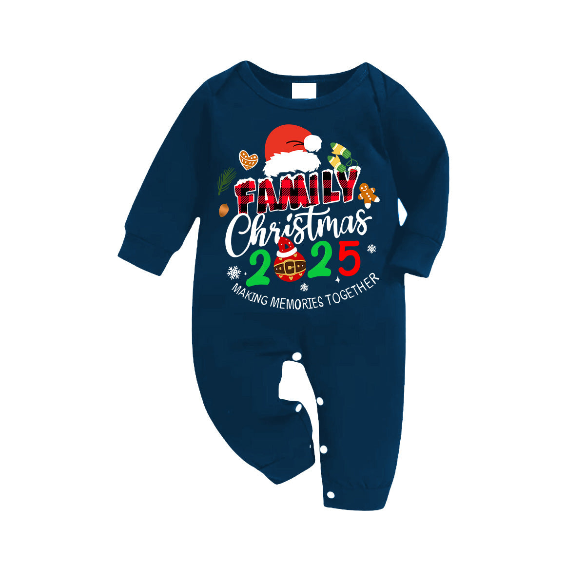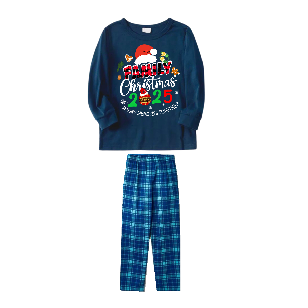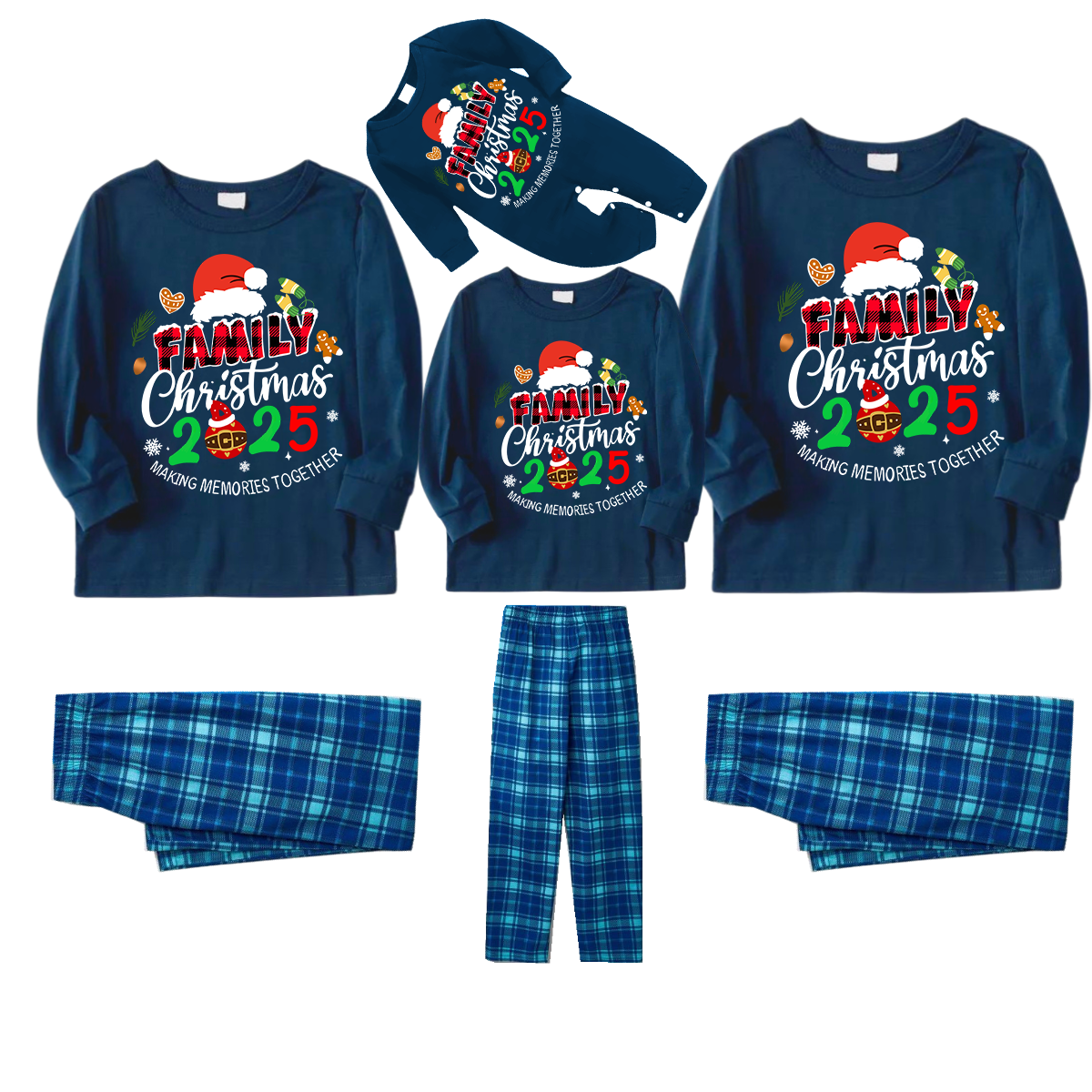Luvik | Perhejoulu 2025 Luoda Muistoja Yhdessä Teksti Printti Sininen Pitkähihoinen Paita Sinisellä Ruudullisella Kuvioilla Perhesovitetut Pyjamat