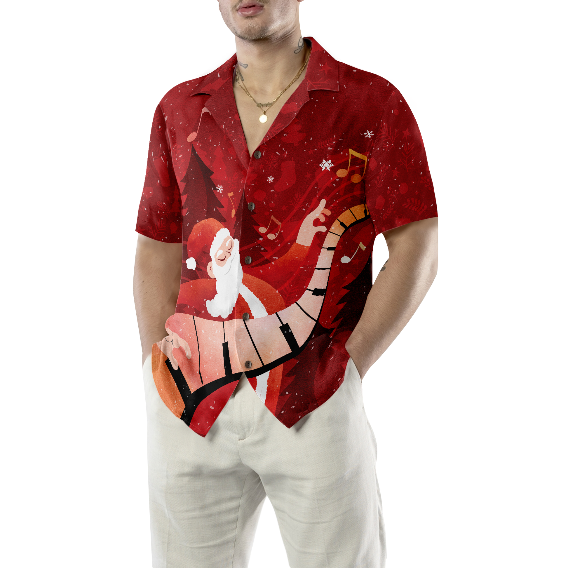Luvik | Jouluiset havaijipaidat miehille ja naisille Hyperfavor, Santa soittaa pianoa Havaijipaita Napillinen lyhythihainen paita