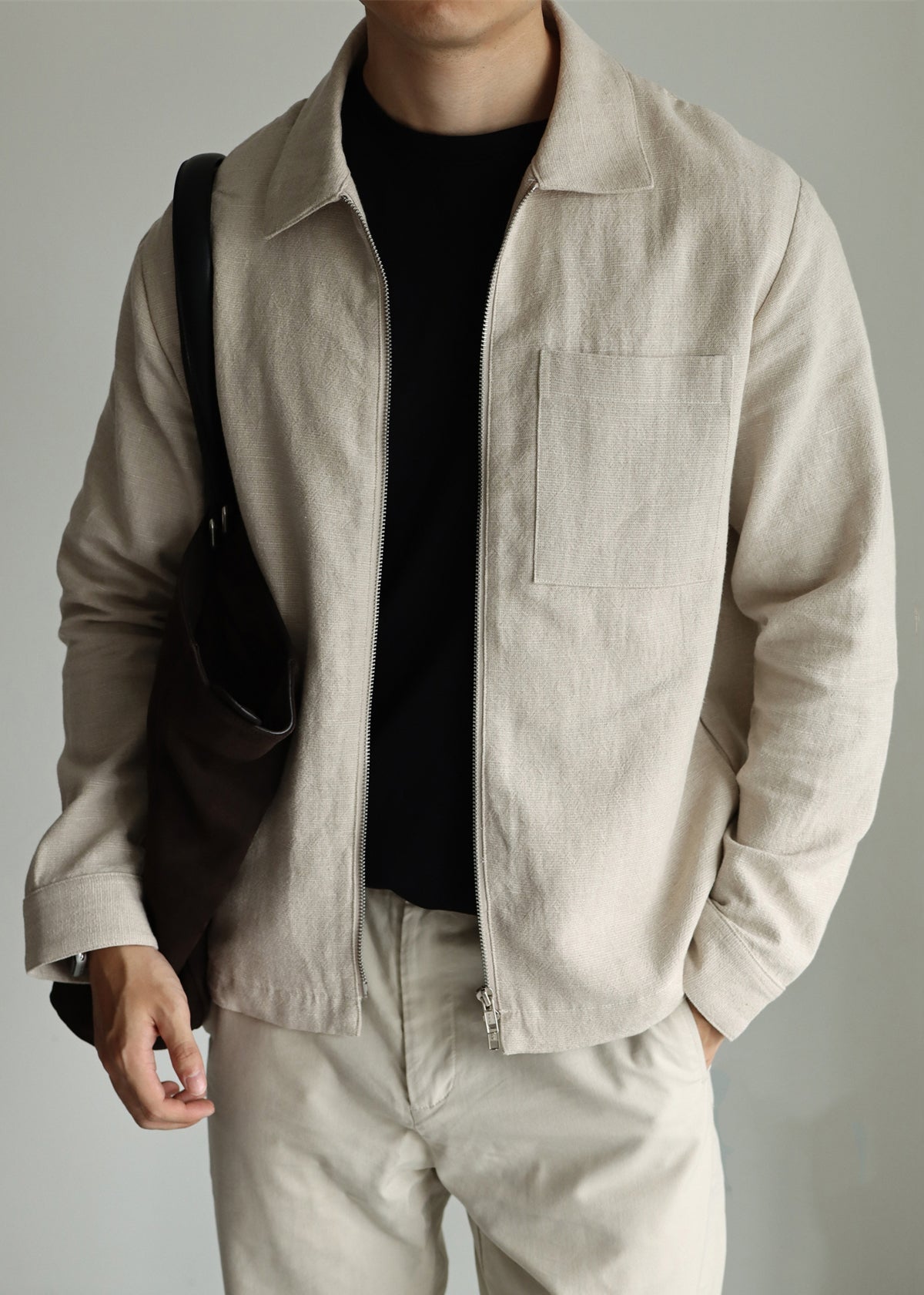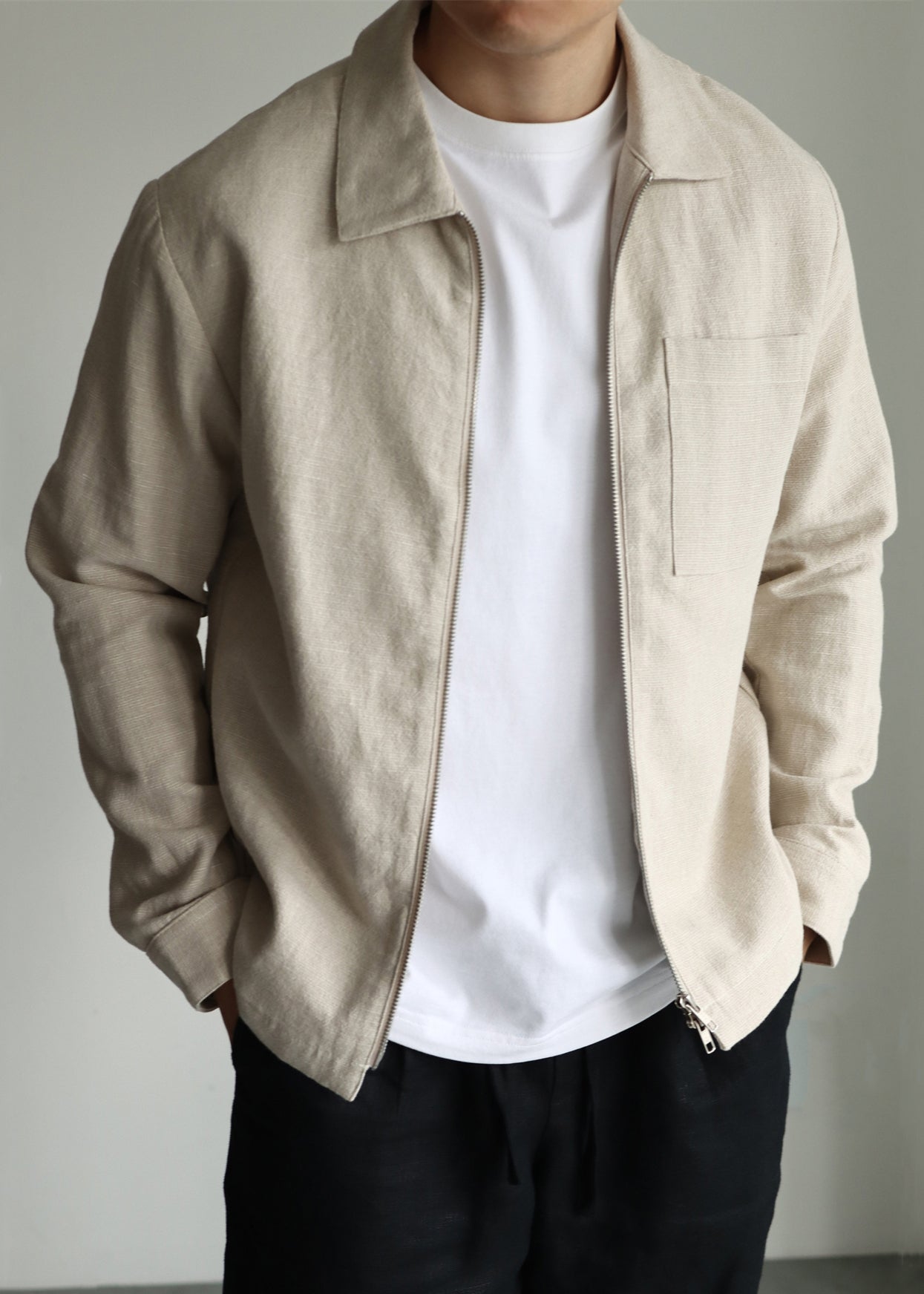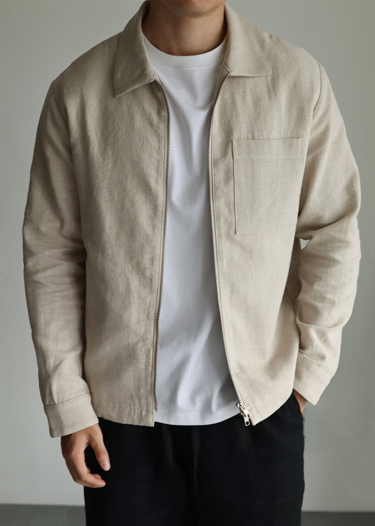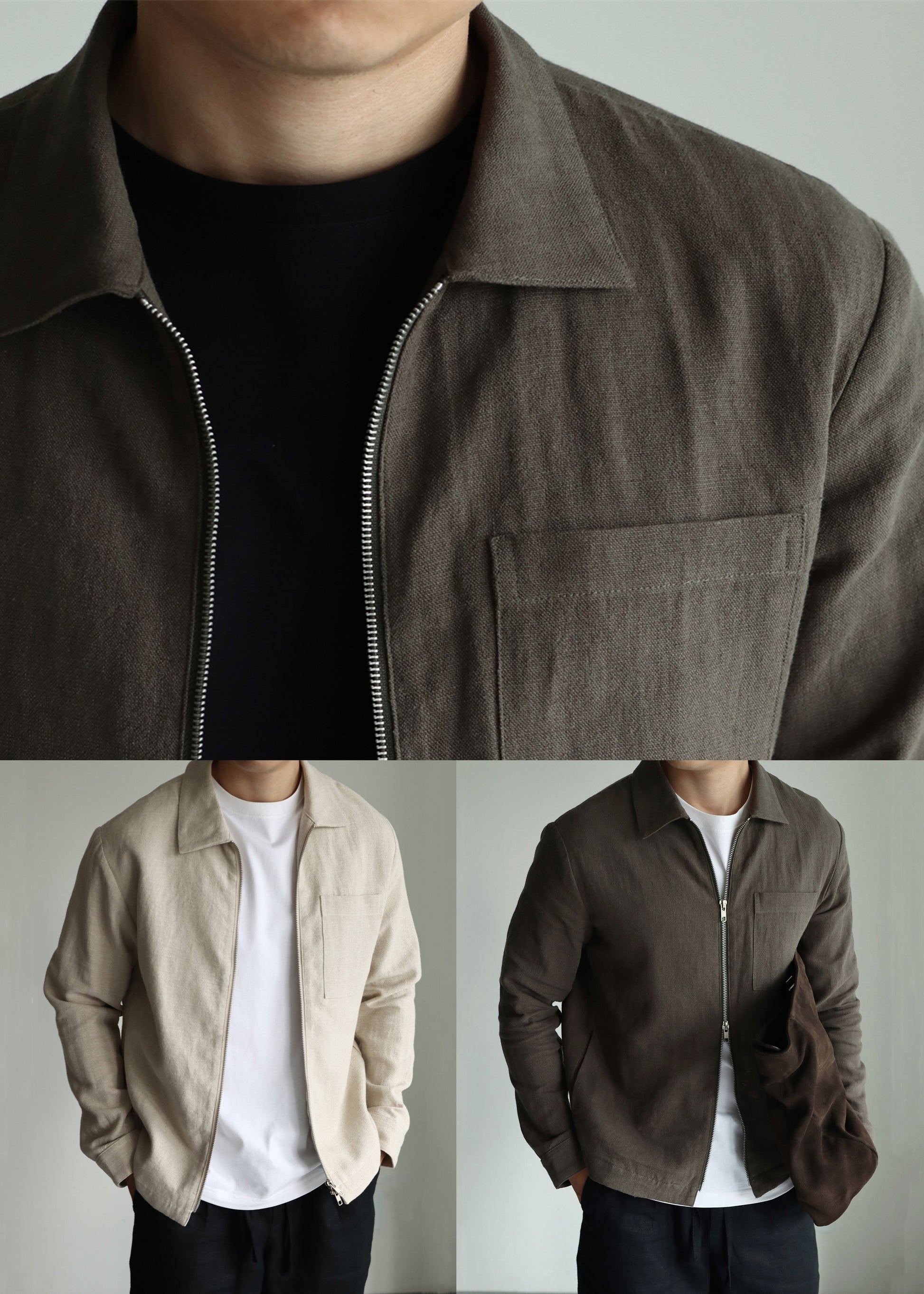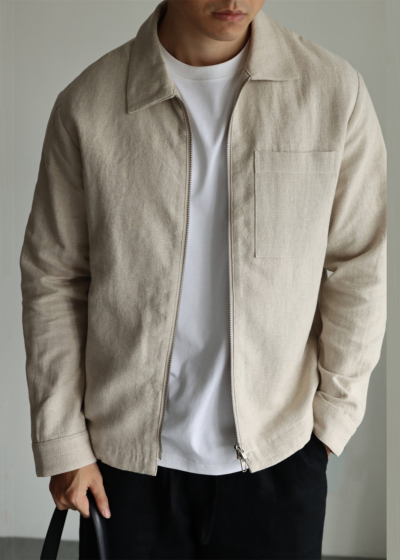Luvik | Miesten yksivärinen pellavapusero khaki-nauhoilla, vetoketjulla ja Peter Pan -kauluksella