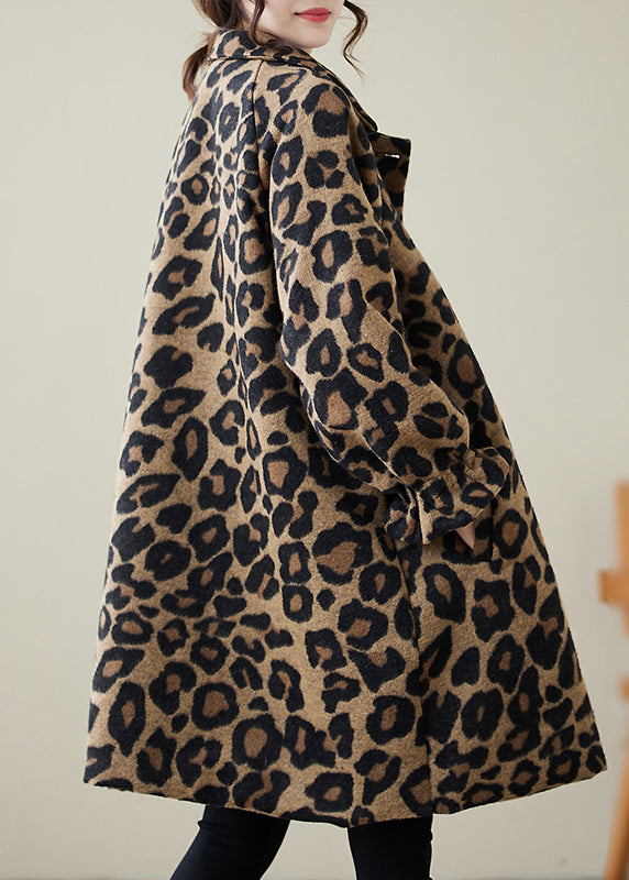 Luvik | Khaki vyötärö plus leopardikuvio villakangastakit talvi