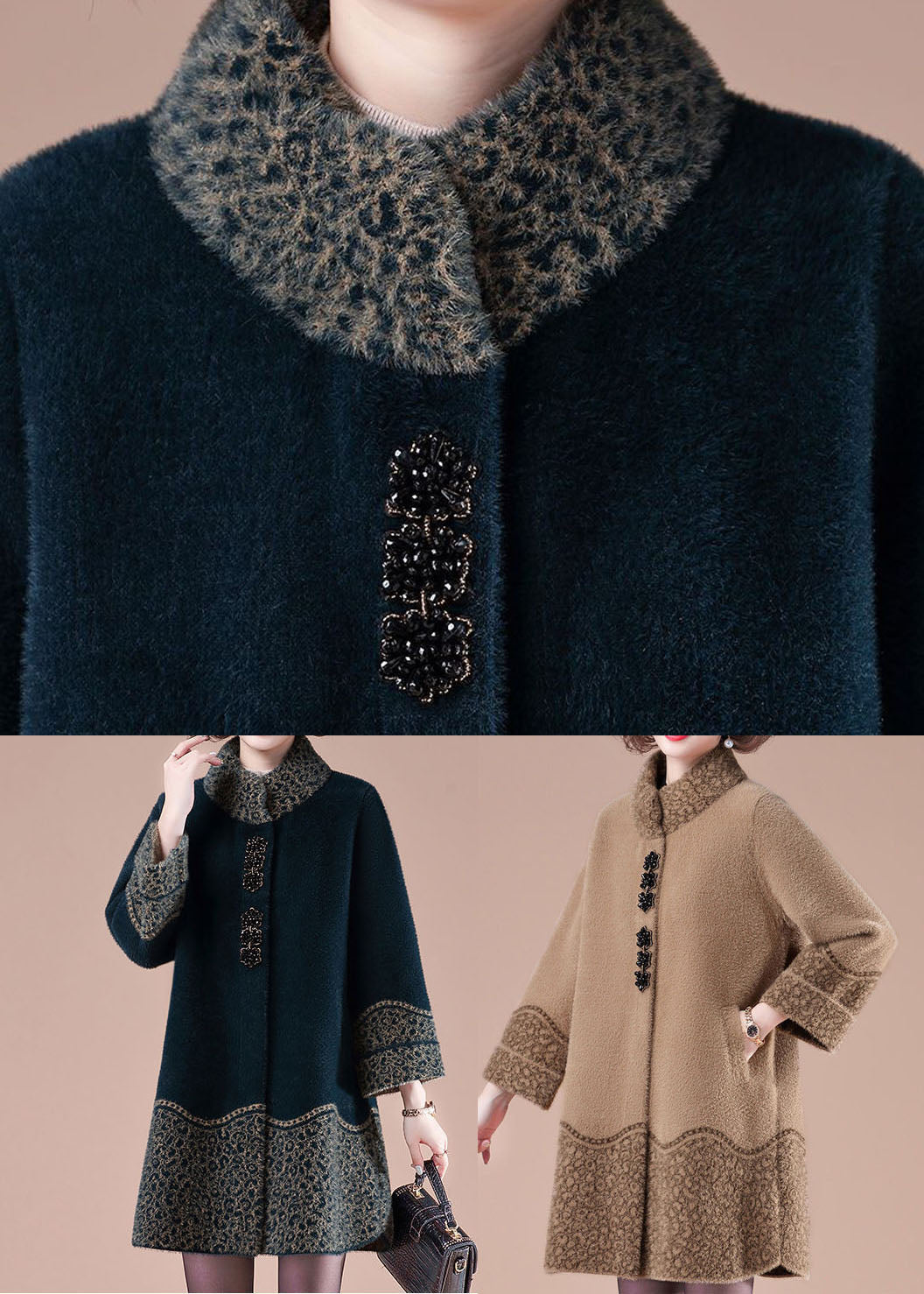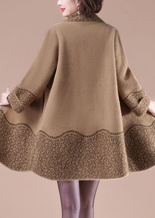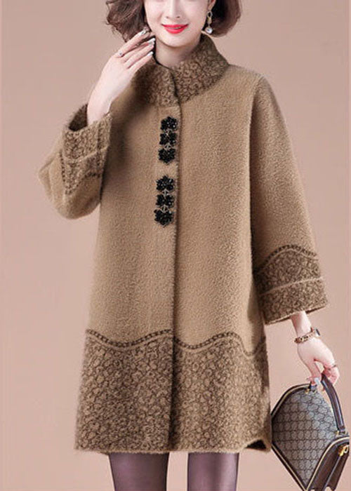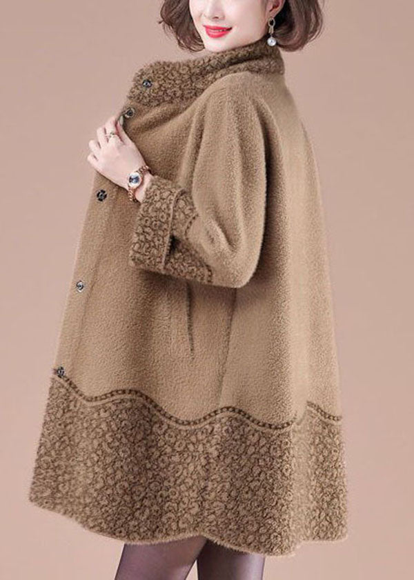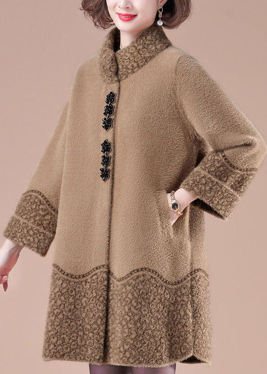 Luvik | Camel Korkeakaulus Taskut Tulostettu Minkki Villa Kootut Takit Talvi