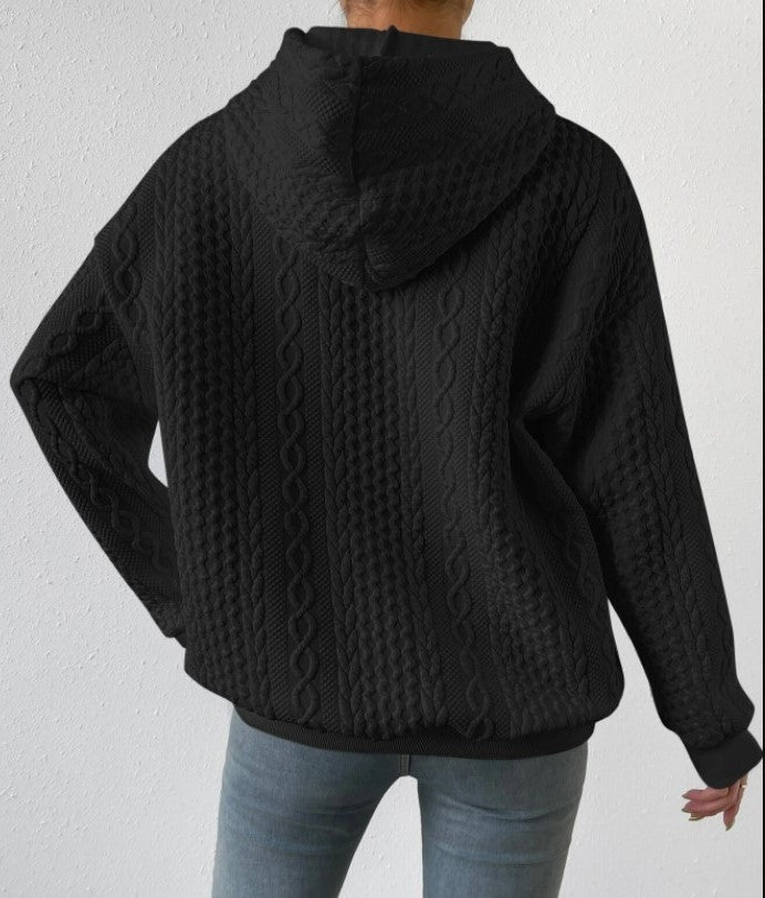 Tyylikäs hupparimuotoilu: Huppu luo rentoa ilmettä, joka sopii täydellisesti vapaisiin asuihin ja tarjoaa samalla lämpöä ja mukavuutta.