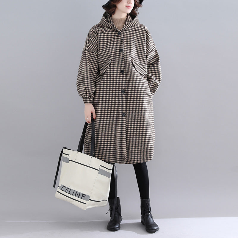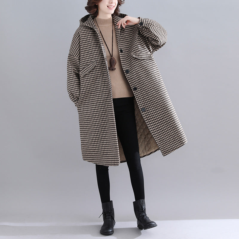 Luvik | trendikokoista naisten ruutukuosillinen parkatakki lämpimällä hupulla luksus talvitakki pitkällä hihalla