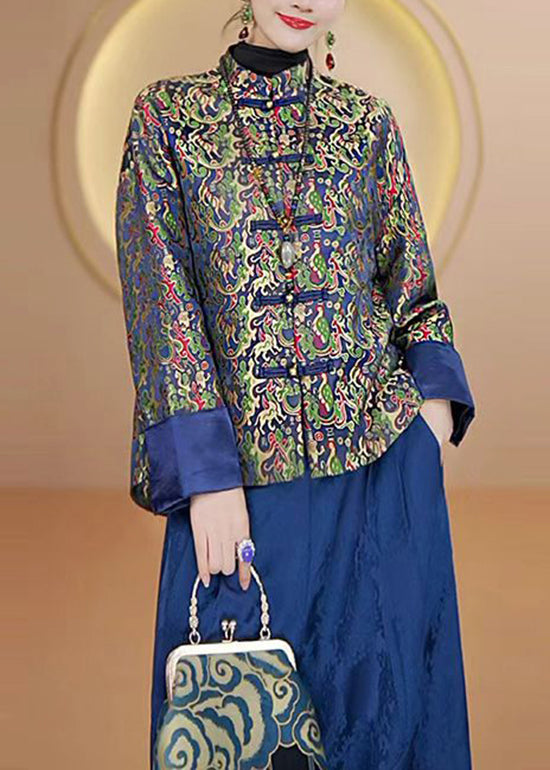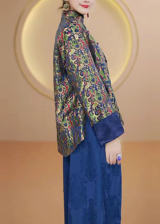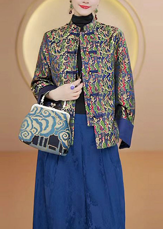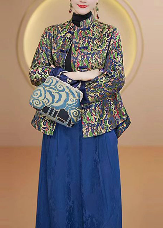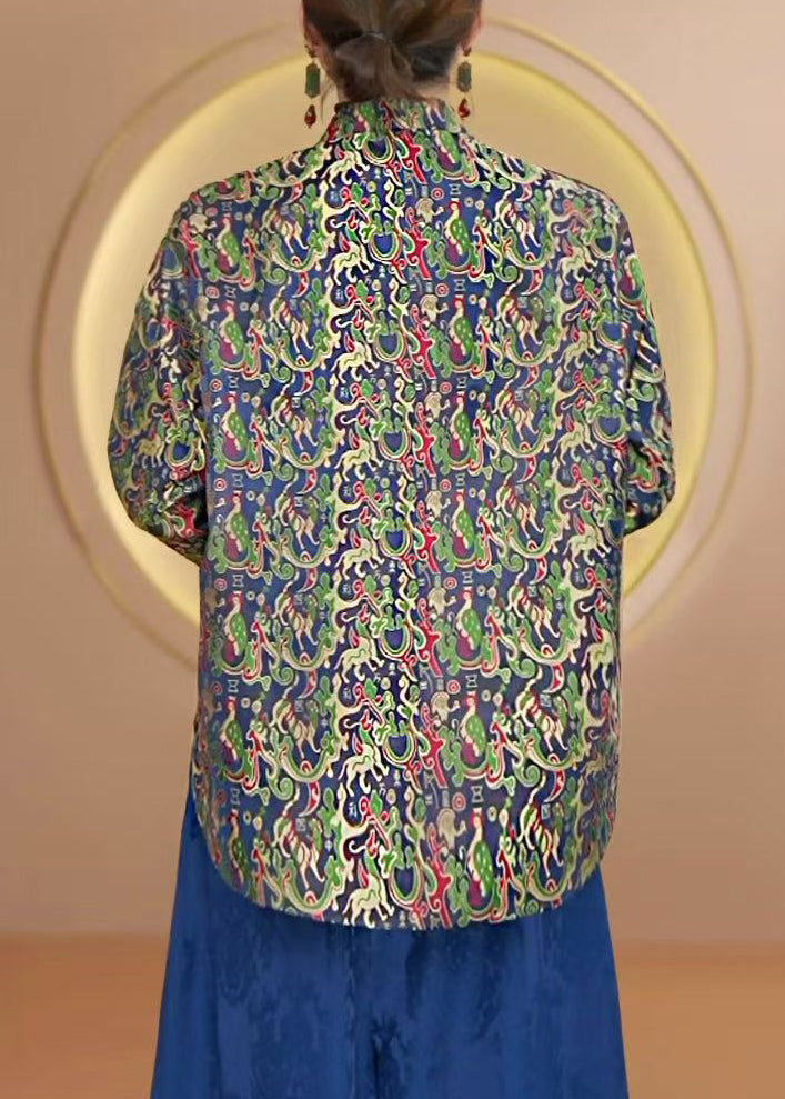 Luvik | Korkeakauluksinen Painettu Kiinalainen Nappitakki Silkkistä