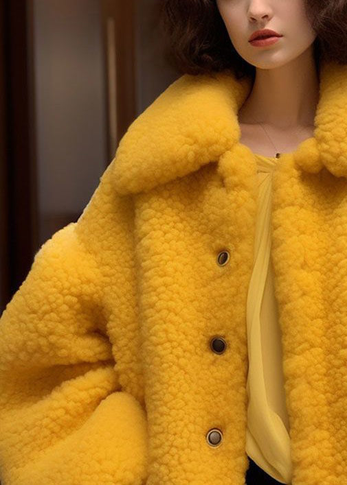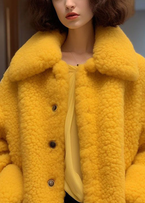 Luvik | Keltainen Peter Pan Kaulus Napit Pehmeä Fleece Takki Pitkillä Hihoilla