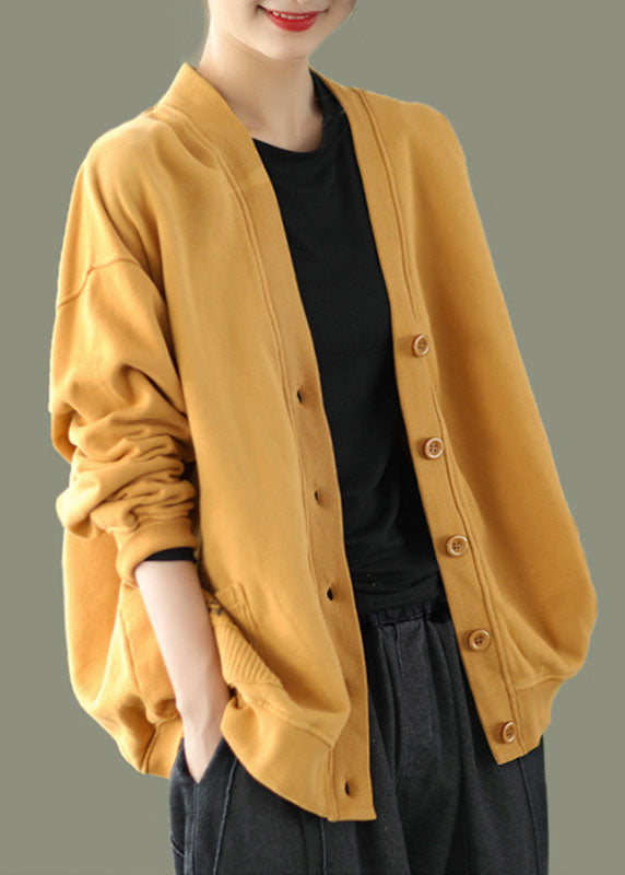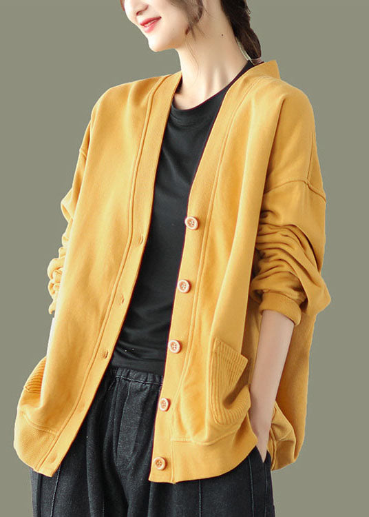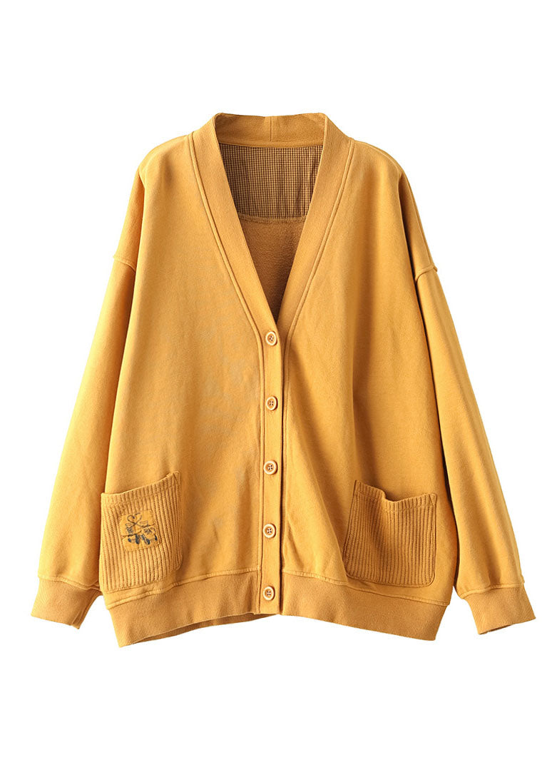 Luvik | Keltainen V-kauluksellinen pitkähihainen takki taskuilla