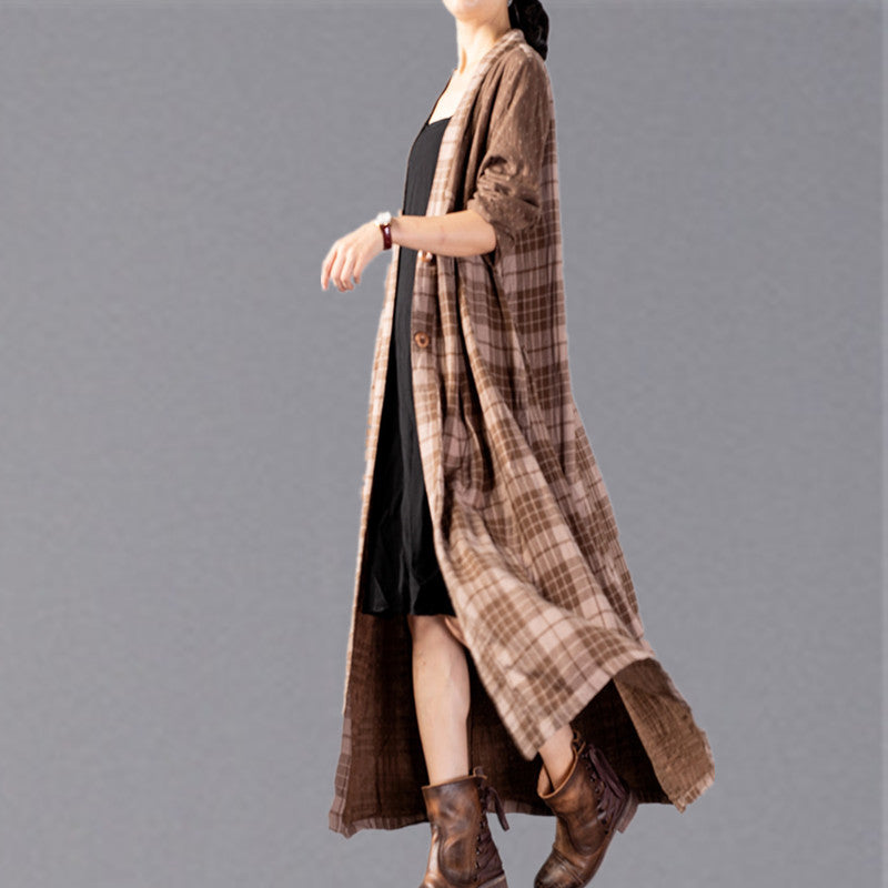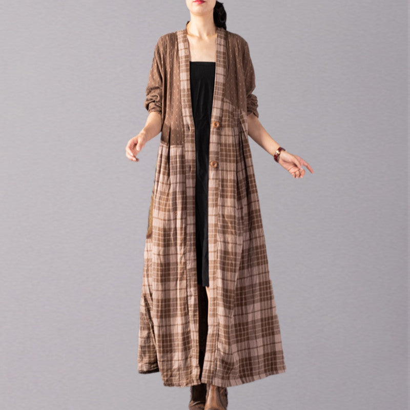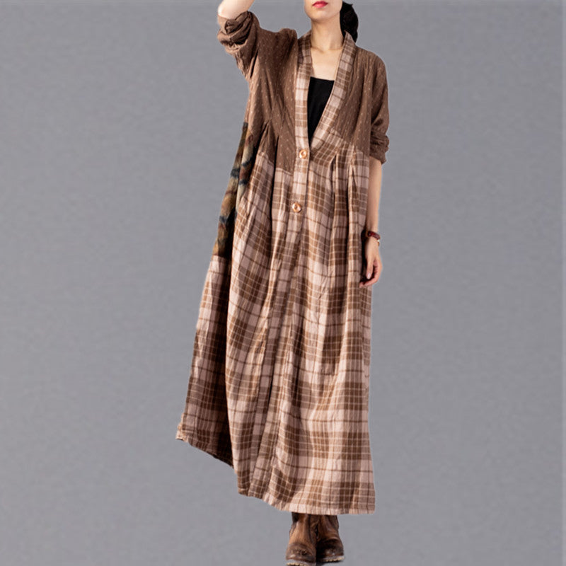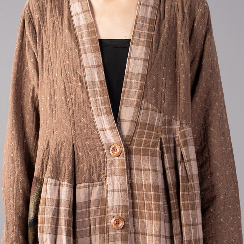 Luvik | oliivinvihreä ruudullinen takki rento leikkaus V-aukko leveä helmatus takki Luvik | maxi takki tilkkutyö