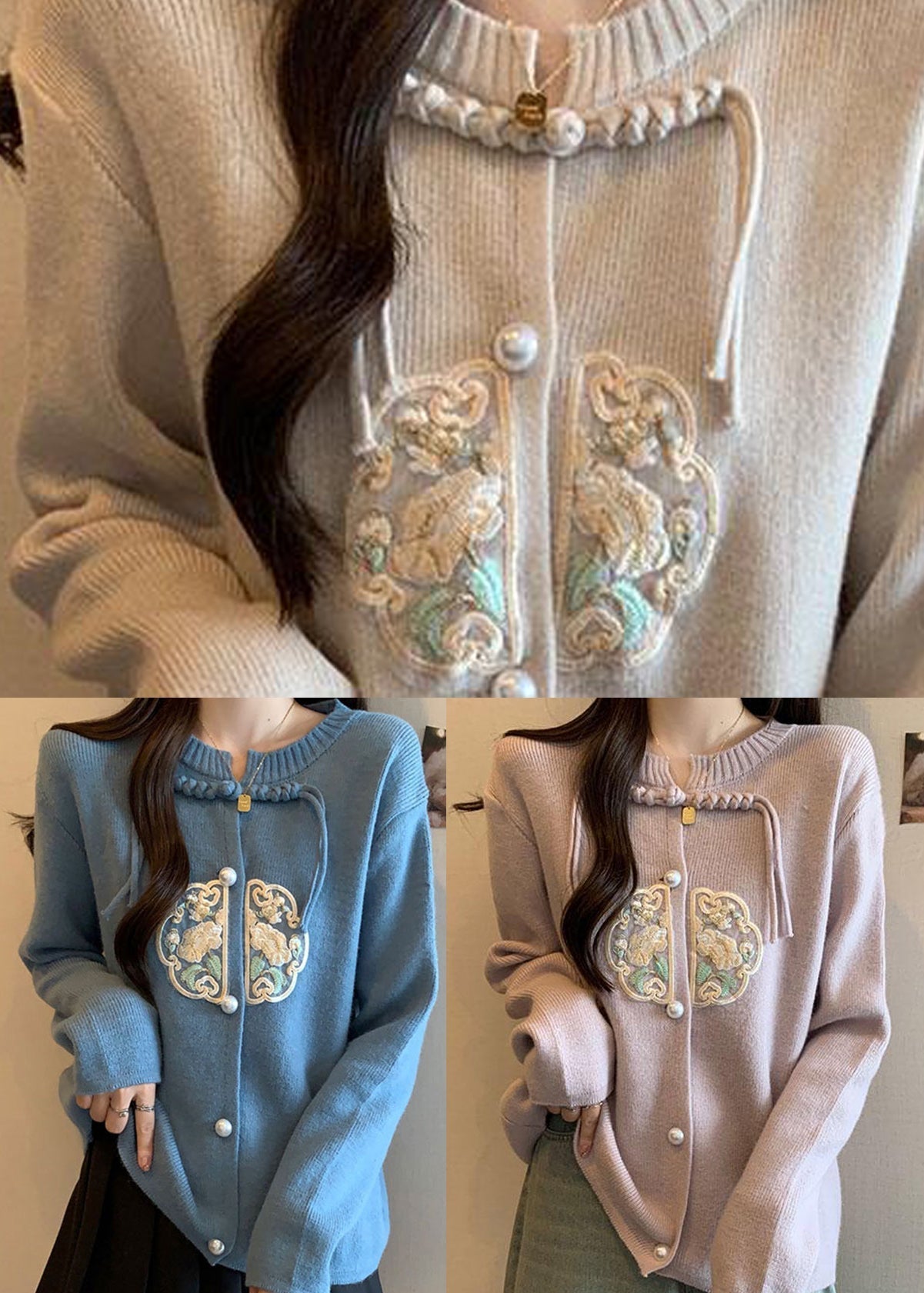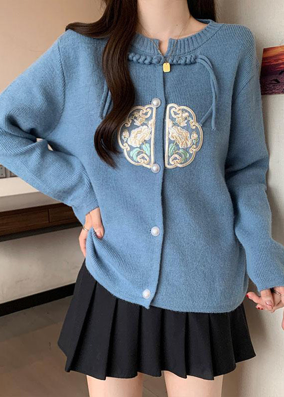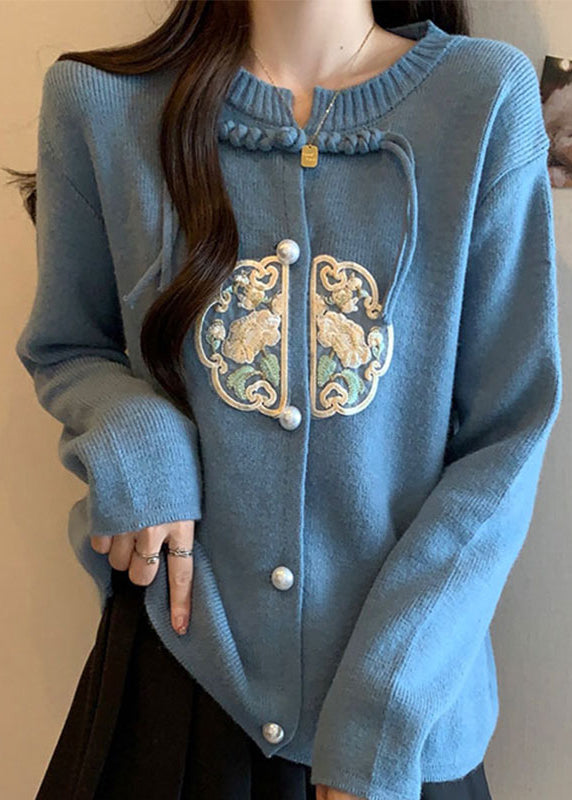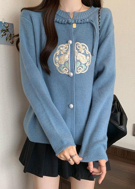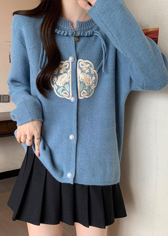 Luvik | Chiidi tyyli neuletakki sininen pyöreä kauluksella tupsuja