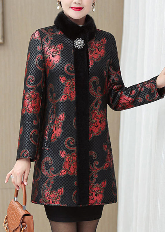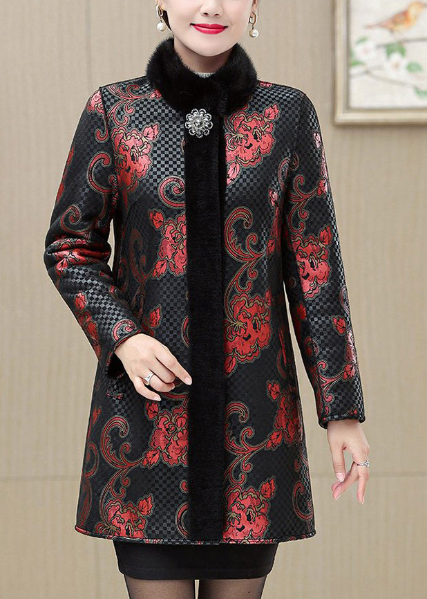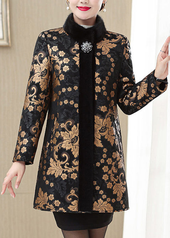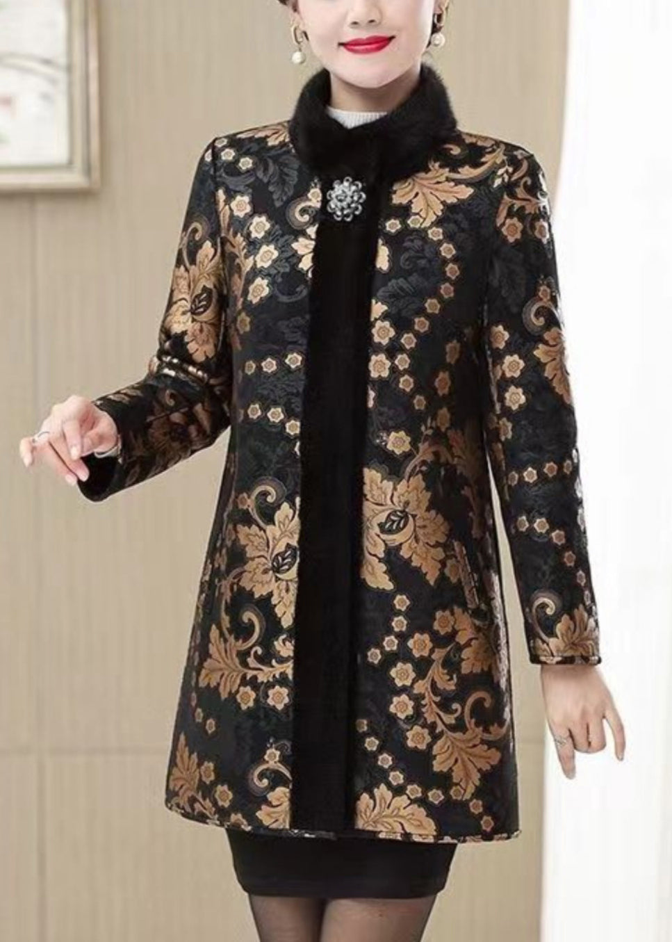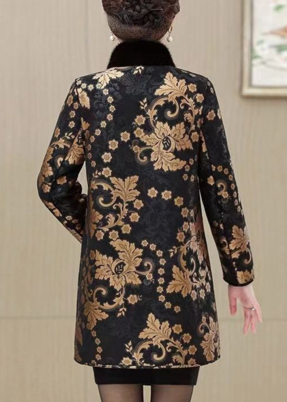 Luvik | Kultakuvioinen nahka- ja lämpökarvotakki, jossa kultakarvakaulus