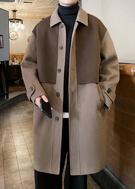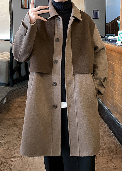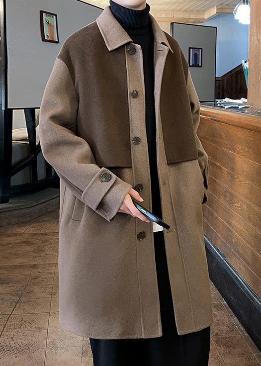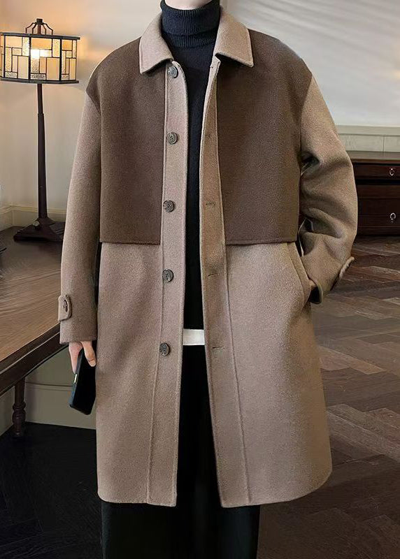 Luvik | Vaalea ruskea Peter Pan-kaulus taskulliset villatakki miehille talveksi