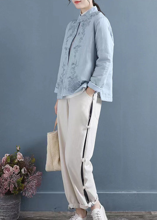 Luvik | Liila Kirjailtu Itämainen Napitettu Ohut Puuvillatakki