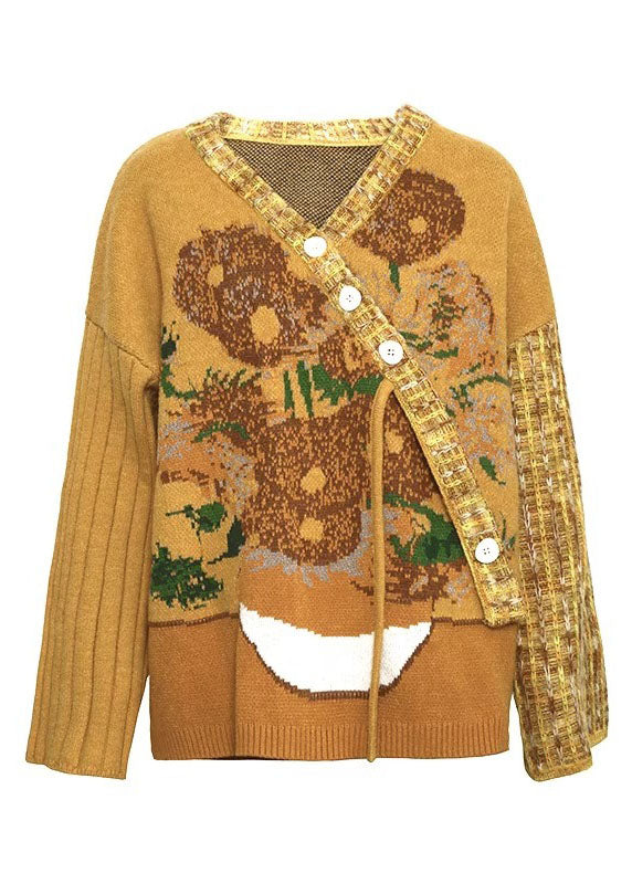 Luvik | Lilas V-leikkaus Kukallinen Nappi Puuvilla Neule