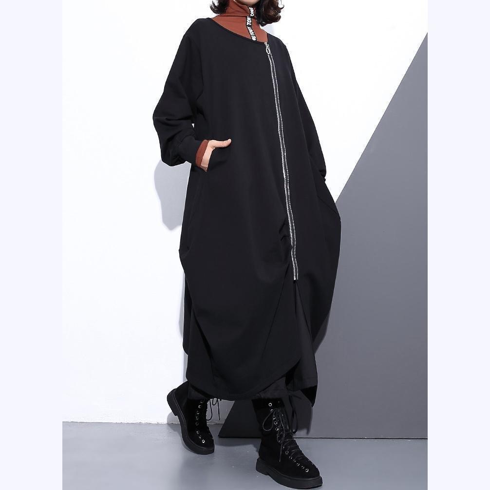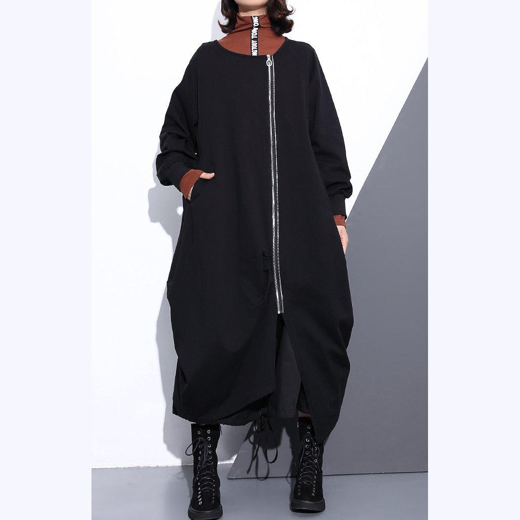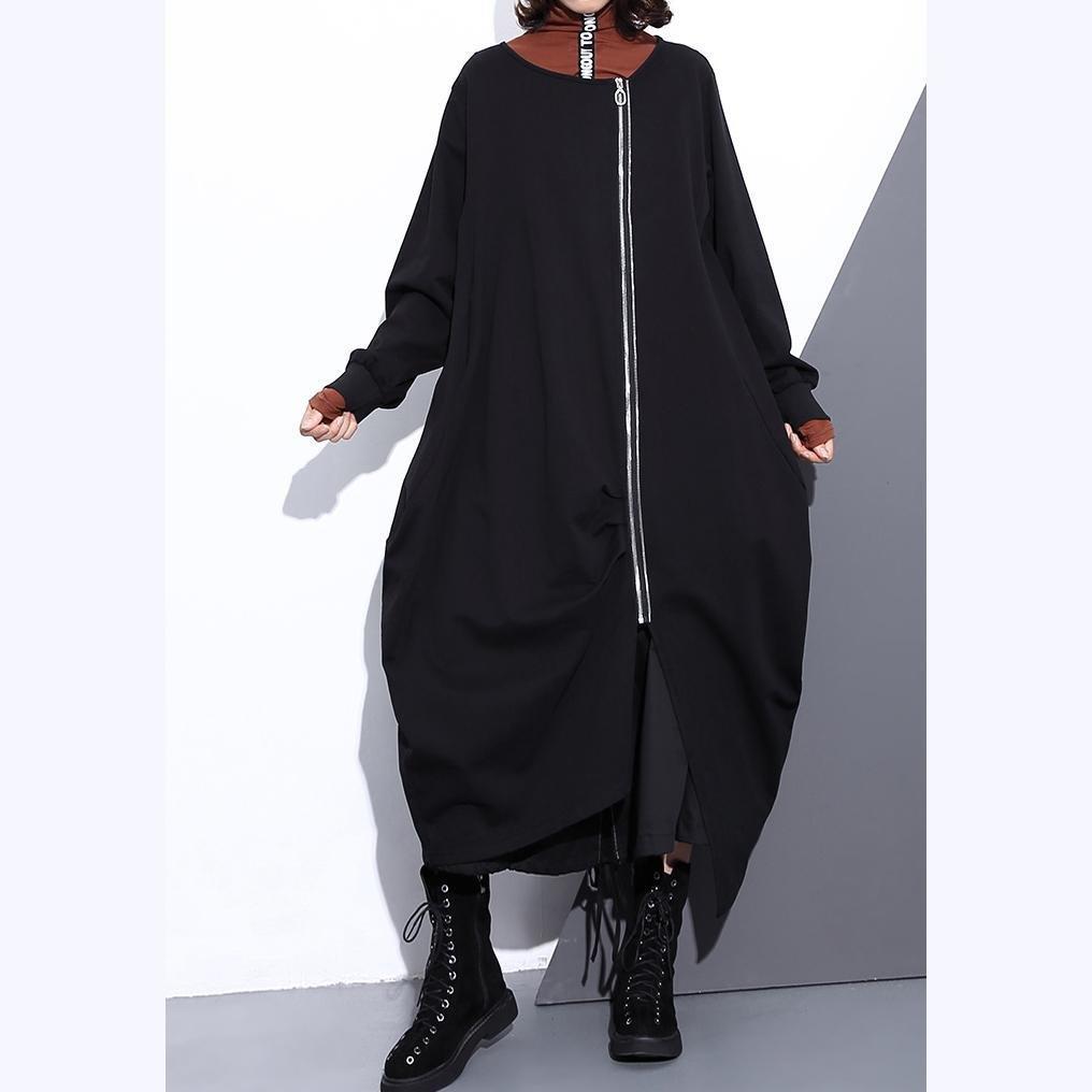 Luvik | musta takki suuri koko O-kaulus epäsymmetrinen takki vetoketju ohut takki pitkä