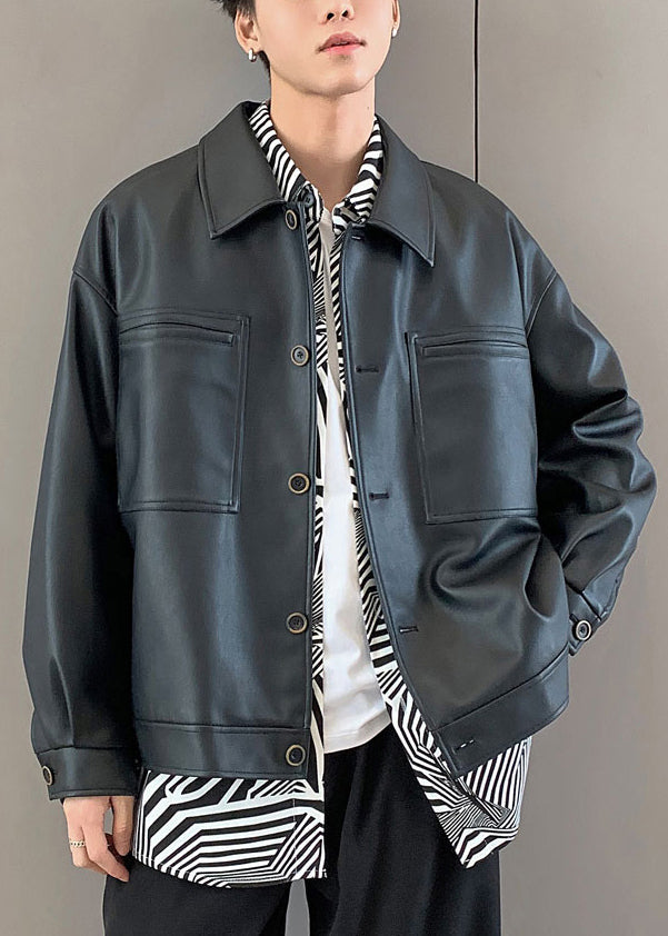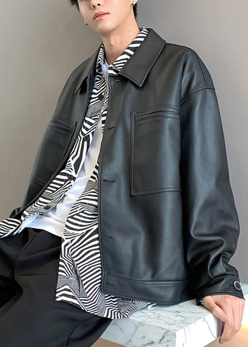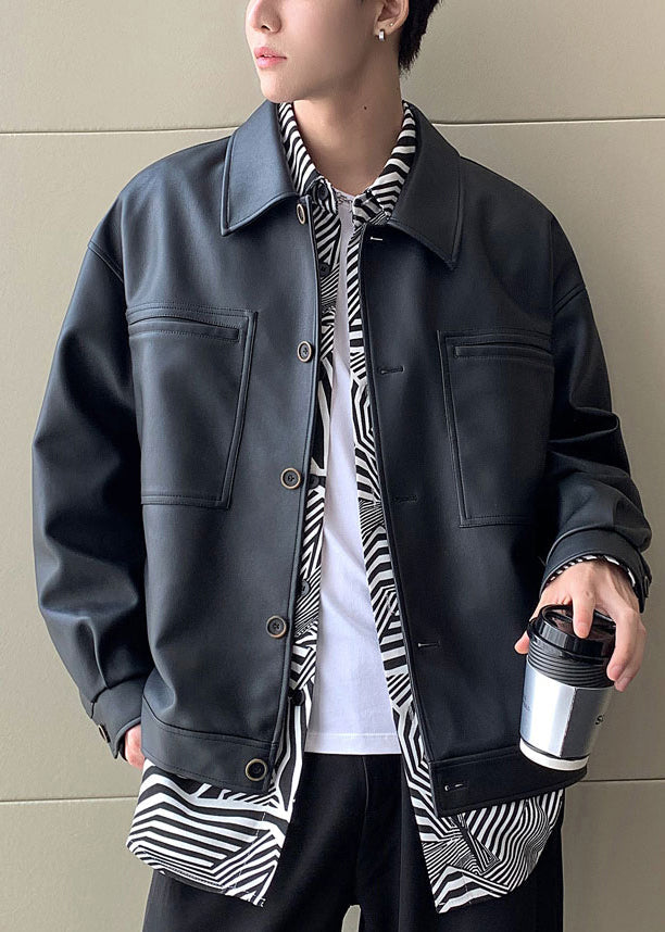 Luvik | Mustat tekonahkatakit taskuilla ja napilla miehille