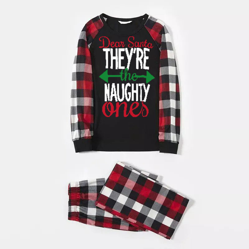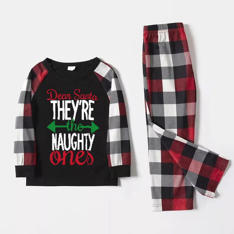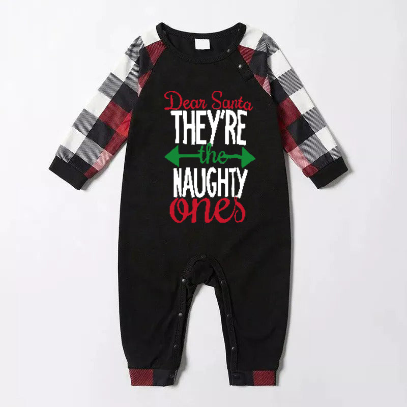 Luvik | Joulu yhteensopivat perhepuvut kirjainprintti musta valkoinen ruudullinen pyjamapaketti 2025